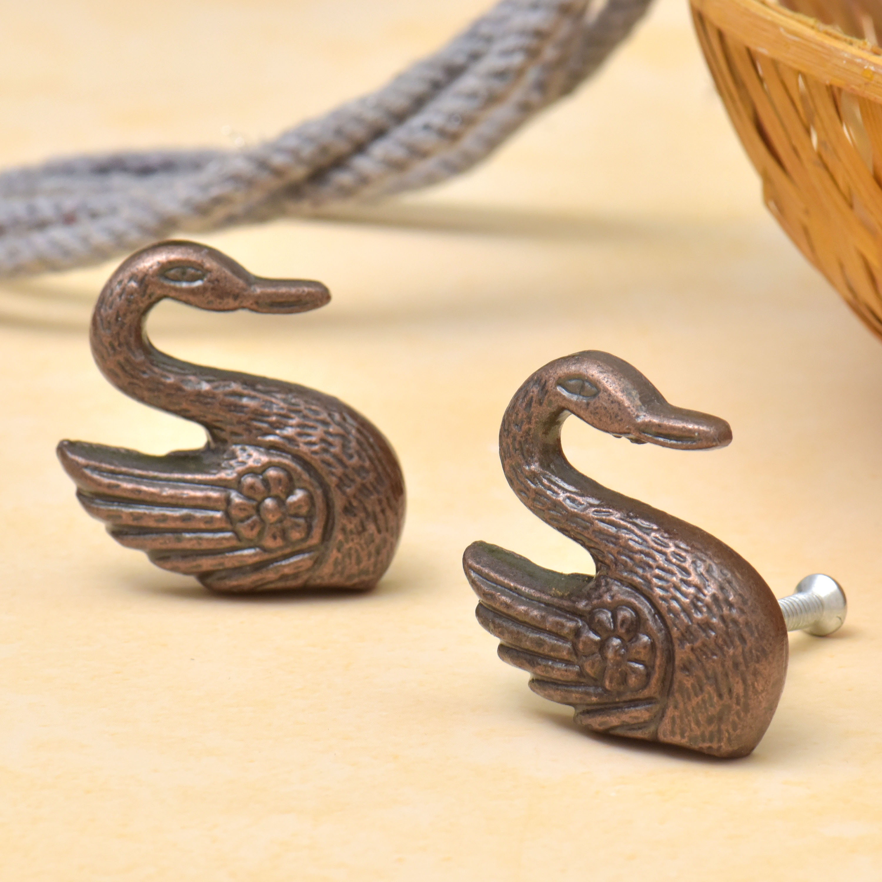 Constructed from premium iron, these knobs are both rust-free and long-lasting. Their antique finish and intricate swan motif seamlessly blend with various interior styles, enhancing the aesthetic appeal of cabinets, drawers, dressers, cupboards, and wardrobes.