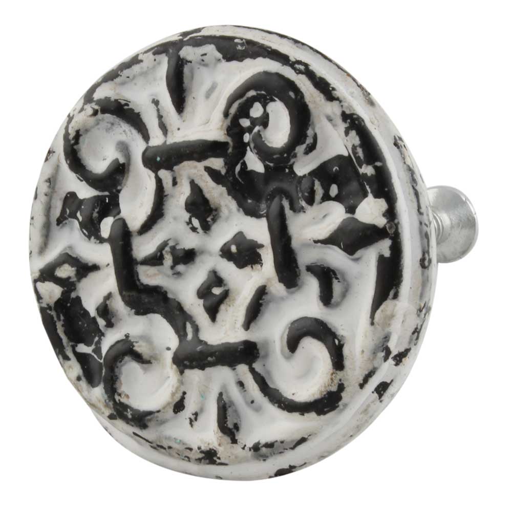 Antique White Floral Round Iron Cabinet Knob