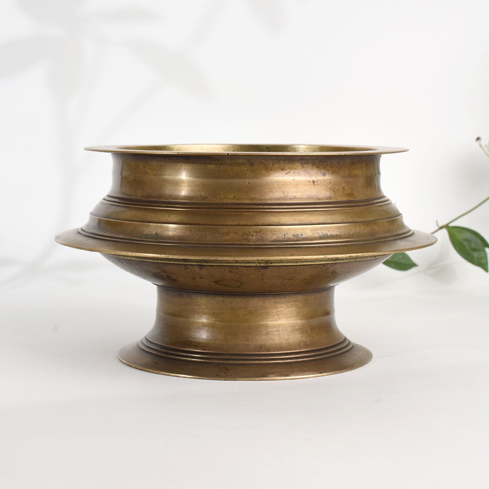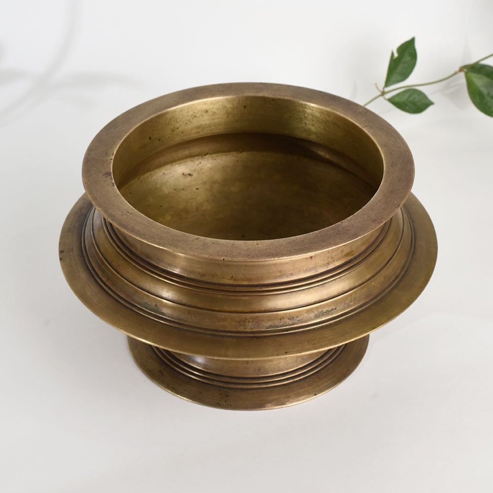 Enhance your home Decor with this antique wide brass pot, a piece that balances function and artistry. The broad lip and sturdy base suggest it was once used for cooking or ceremonial purposes, while the warm golden tone and gentle patina tell stories of years gone by. Place it on your floor filled with dried branches or fresh greenery, or use it as a unique planter for indoor foliage. The pot’s weight and craftsmanship ensure stability and longevity, and its timeless design fits seamlessly into eclectic or traditional interiors. Because it is handmade, each pot bears slight marks of its creation, adding authenticity and character to your Decor.