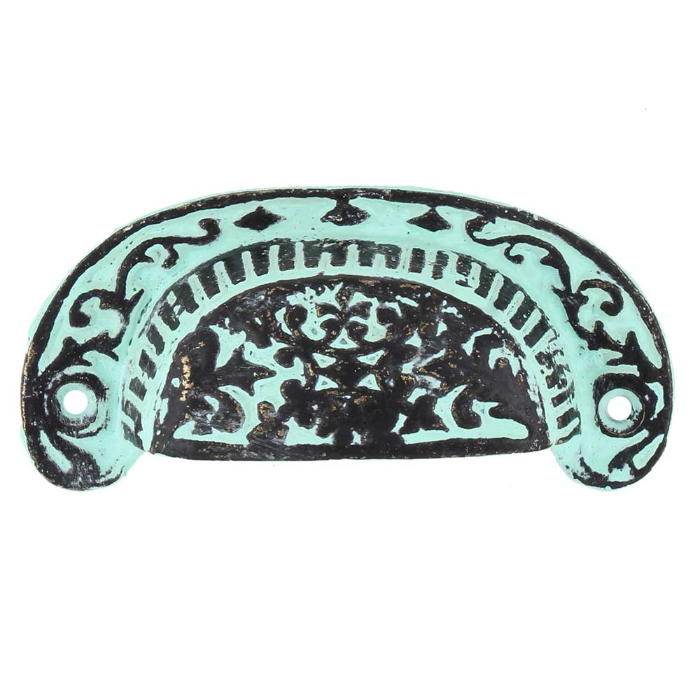 Crafted from high-quality iron, this handle is as durable as it is beautiful. The distressed aqua green finish not only gives it an antique look but also ensures that it can withstand years of daily use. Whether it’s for a kitchen cabinet, bedroom dresser, or wardrobe door, this handle brings functionality and style into perfect harmony.