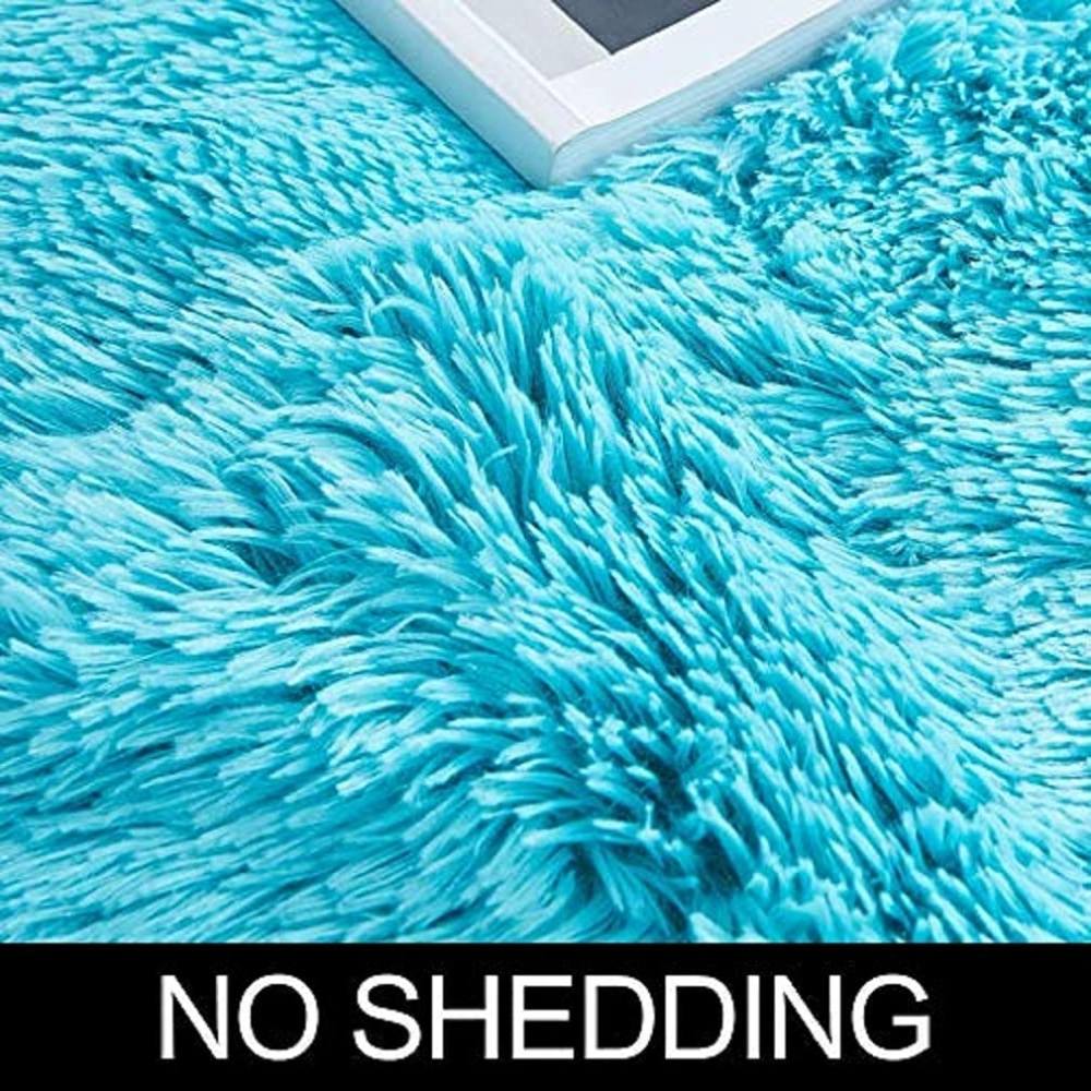 Vacuum regularly on a low setting to keep the shag pile fluffy. Spot clean gently with mild detergent and cold water. Avoid machine washing or direct sunlight drying to maintain color vibrancy.