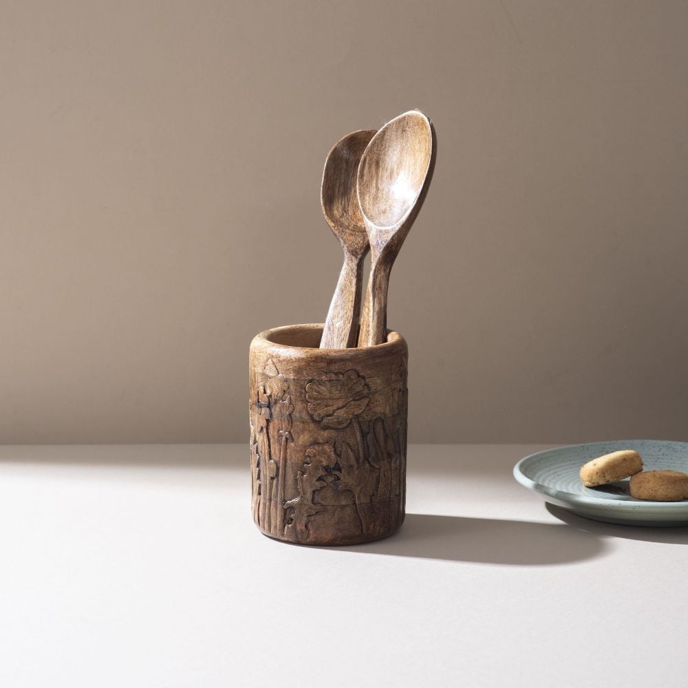 Add a touch of elegance to your kitchen with the Artisan Dandelion Carved Spoon Stand. Handcrafted from premium wood, this piece features a beautifully carved dandelion motif. Designed to hold your everyday utensils, it brings nature-inspired charm and organized functionality to your countertop.