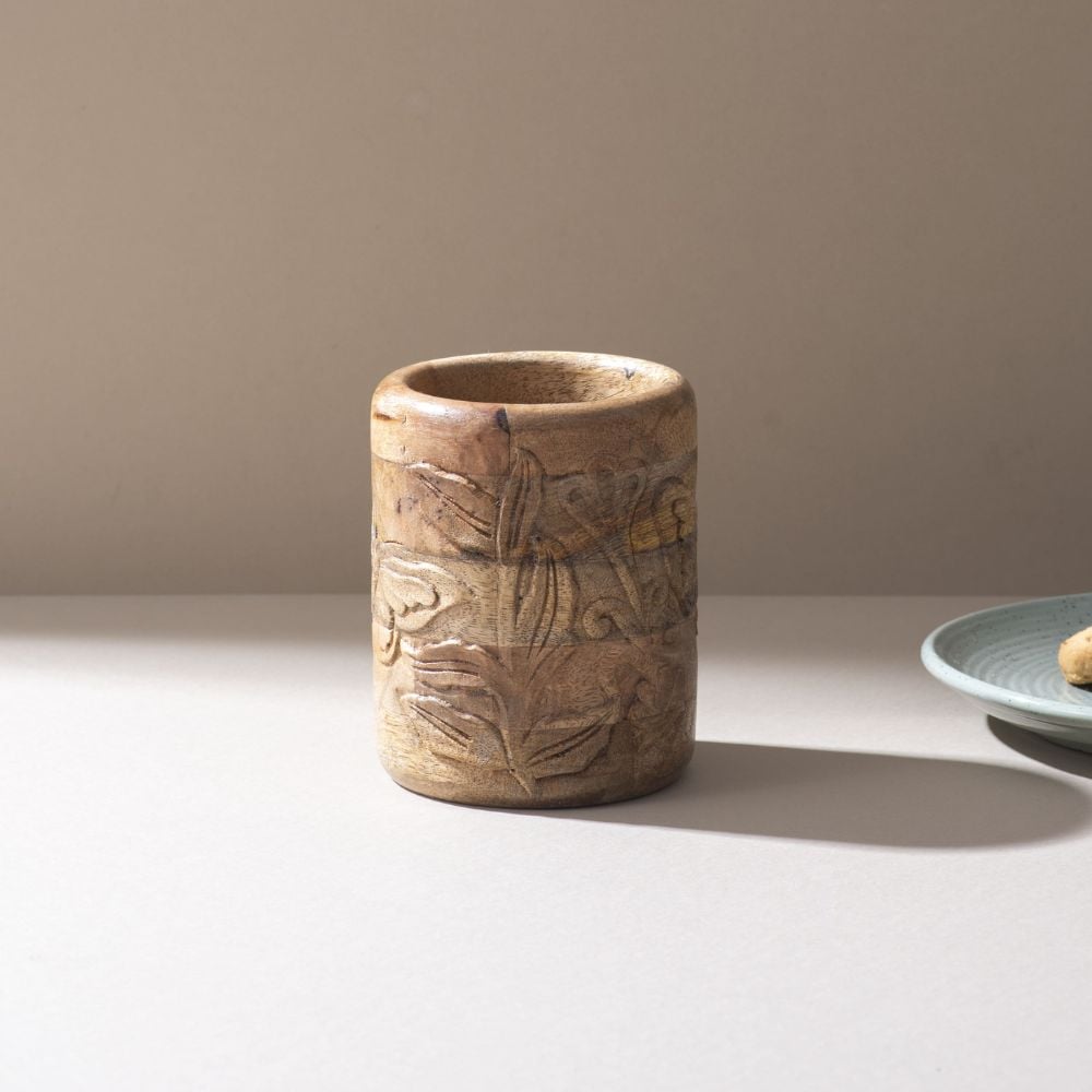 Elevate your kitchen counter with the Artisan Leaf-Engraved Spoon Stand, crafted from quality wood and detailed with a delicate leaf engraving. This stand not only organizes your cooking tools but also adds a nature-inspired charm to your space. A perfect blend of beauty and function for everyday kitchens.