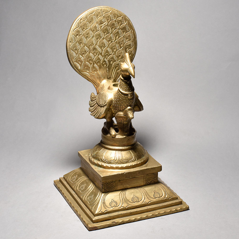 Bring the majestic beauty of India's national bird right into your home with this stunning Artistic Peacock Stand. Crafted by skilled artisans in South India, this exquisite piece is a true work of art that will captivate anyone who lays eyes on it. This artistic peacock stand is so much more than just a decorative piece - it's a magnificent statement of Indian culture and heritage that will elevate the style and ambiance of any room. Imagine placing your favorite plants, candles, or knickknacks atop this stunning pedestal, or using it to showcase treasured family photos or artwork.The perfect fusion of form and function, this peacock stand is a must-have for anyone who appreciates fine craftsmanship and the beauty of nature. Whether you're looking to add a touch of global flair to your living space or searching for a thoughtful housewarming or birthday gift, this piece is sure to impress. Bring the majestic elegance of India's national bird into your home today with this one-of-a-kind Artistic Peacock Stand.
