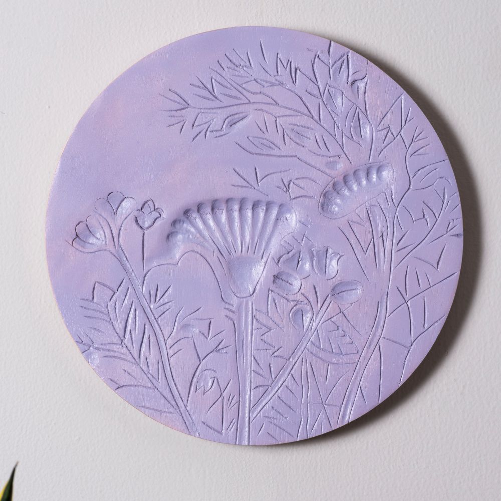 Add a vibrant artistic charm to your walls with the Artistic Purple Wooden Wall Plates, a stunning handcrafted set featuring floral carvings in blue and lavender hues. These round and rectangular plates blend contemporary design with traditional wood carving, making them a striking choice for stylish interiors.