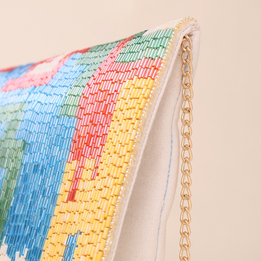 Aurora Mirage Hand-Beaded Clutch with Elegant Chain Strap