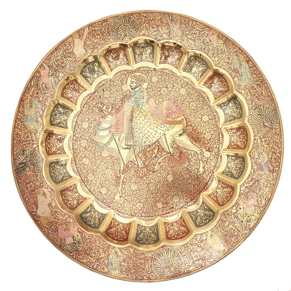 • Authentic Camel Rider Embellished Decorative Tray By Rajasthan Artists