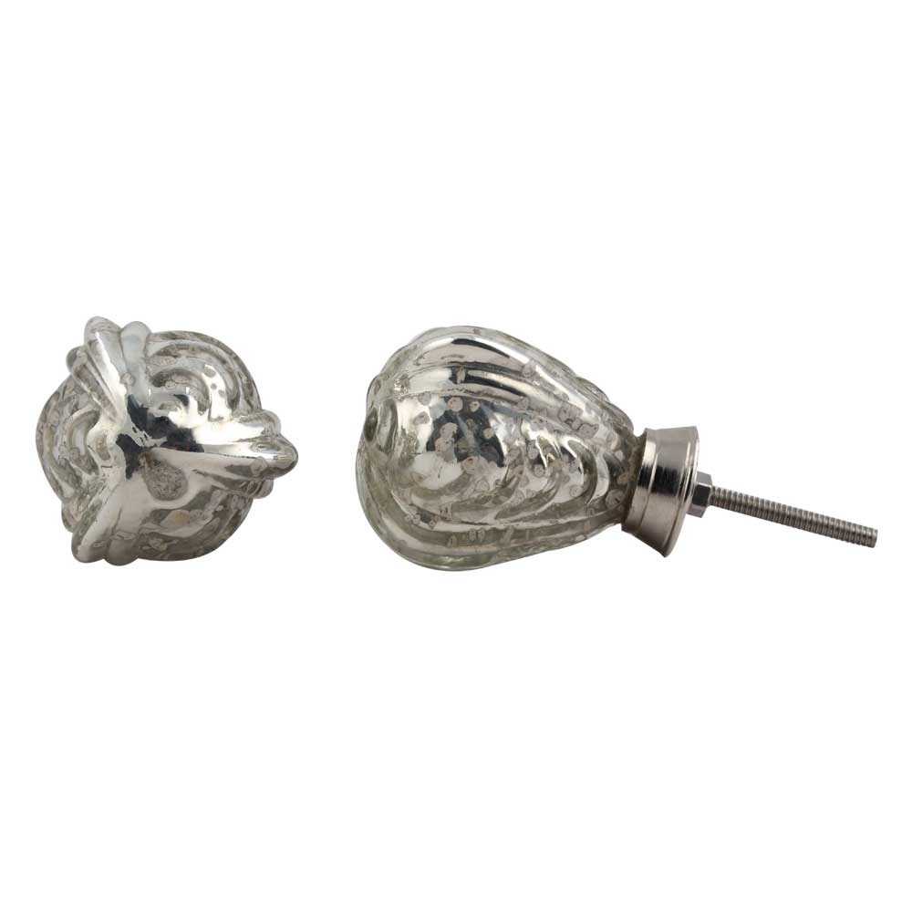 Avocado Silver Glass Knobs. Ideal for Drawer, Dresser, Cabinet, Wardrobe, Cupboard and almirah