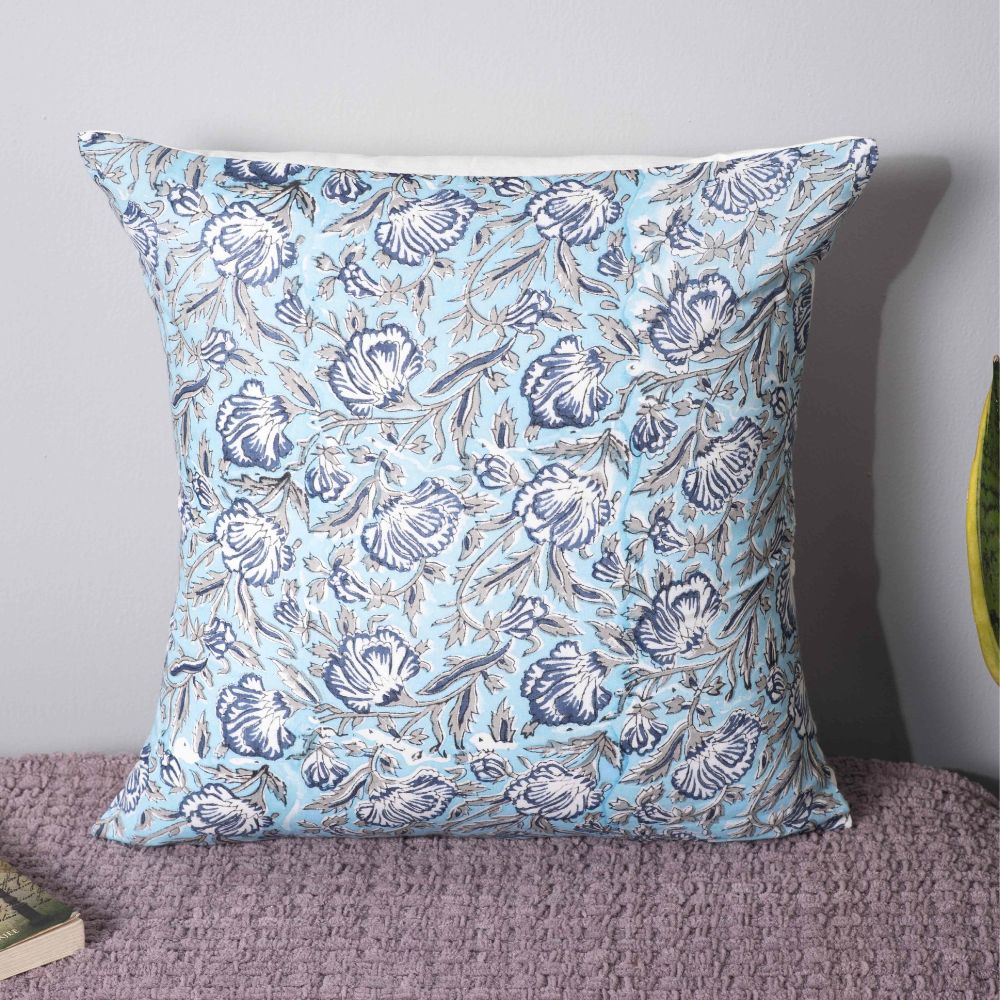 The Azure Blossom Pillow Cover brings a serene charm to your space with its soft blue base and graceful floral accents. Crafted from premium fabric, it offers both comfort and durability. Whether used on a sofa, bed, or accent chair, this pillow cover adds a refreshing touch of nature-inspired elegance to your home décor.