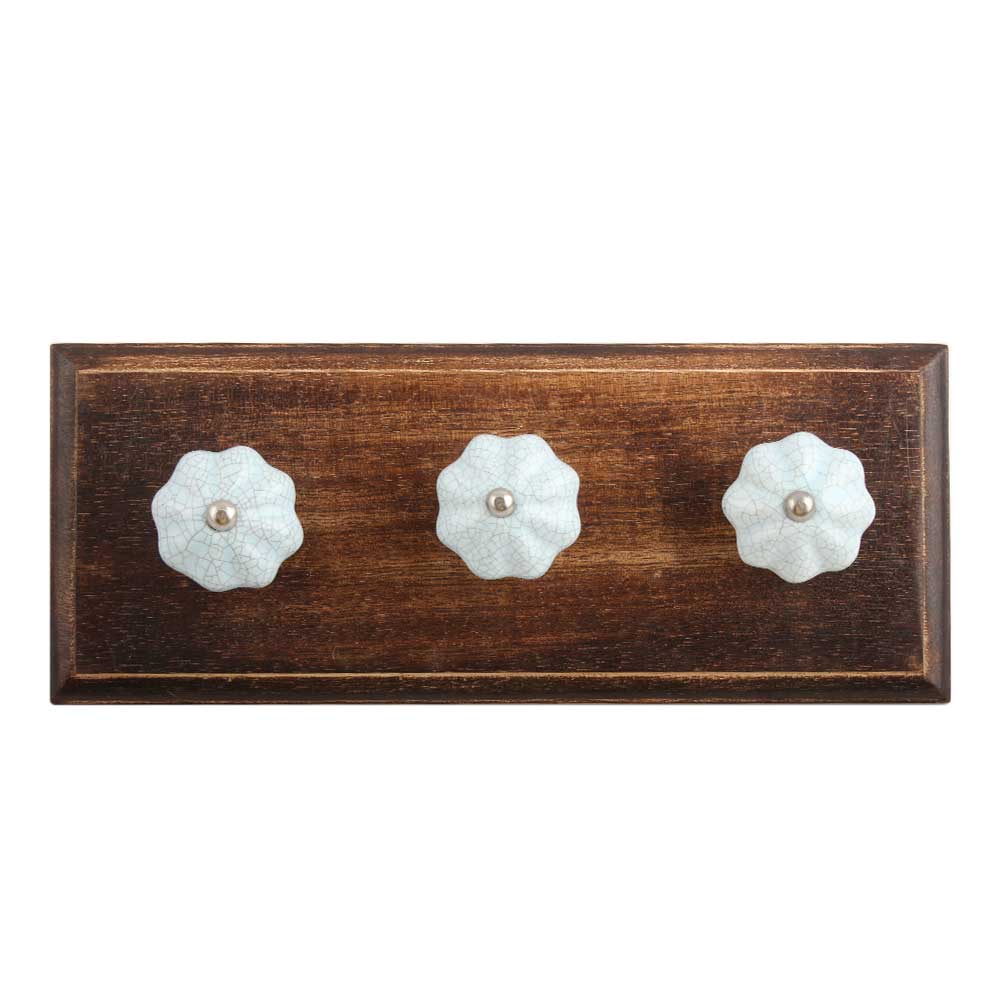 Baby Blue Crackle Ceramic Wooden Hook. A Perfect Complement to the Soft Tone of the Wood are these White Traditional Hat Coat Hook Made of Genuine Porcelain and Brass. It can be use to Hang Jewellery, Leashes, Towels, Scarves, Light Weight Sweaters, Caps Etc.