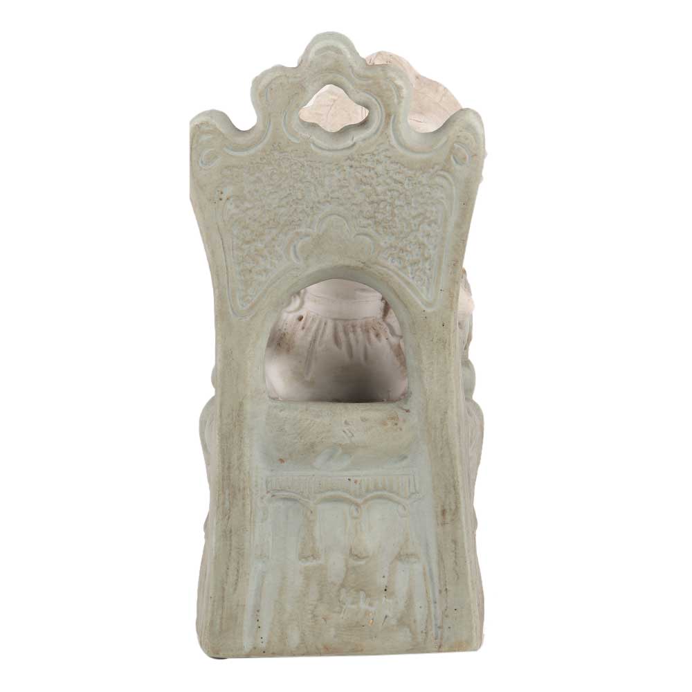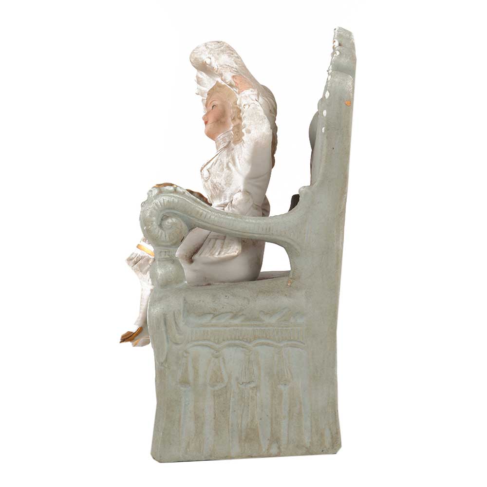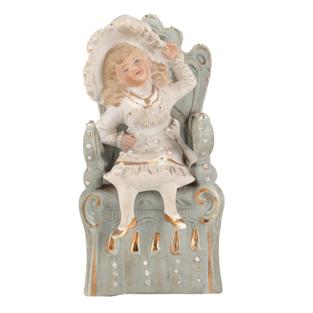 Beautiful porcelain doll with a stylish hat, gorgeous blonde hair, a white dress sitting on chair is perfect for ceramic doll collectors. Suitable for collecting, house decoration, birthday and Christmas gifts.