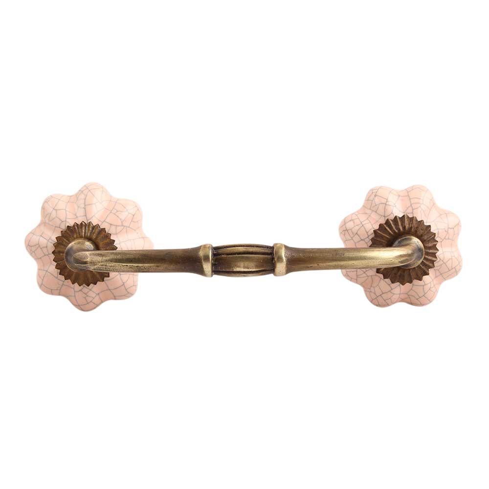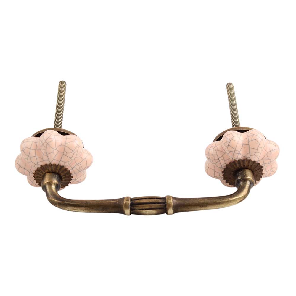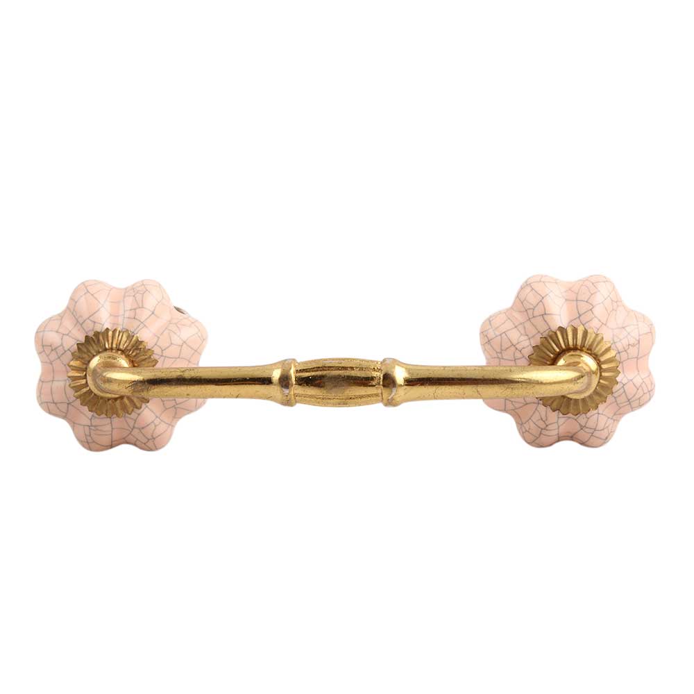 Baby Pink Crackle Ceramic Melon Bridge Handle. Ideal for Drawer, Dresser, Cabinet, Wardrobe, Cupboard and Almirah.