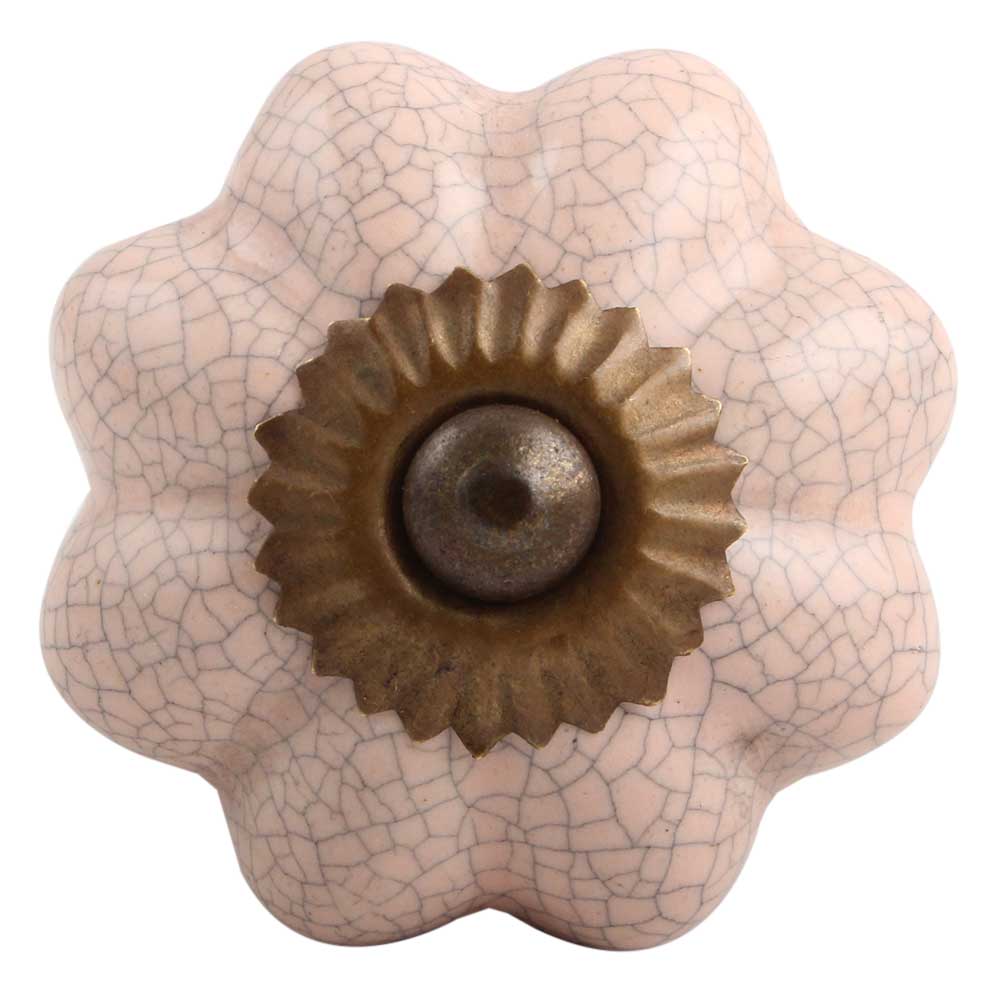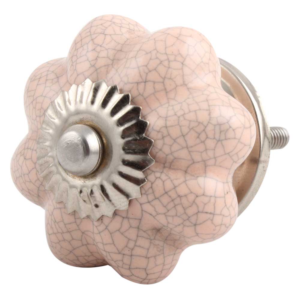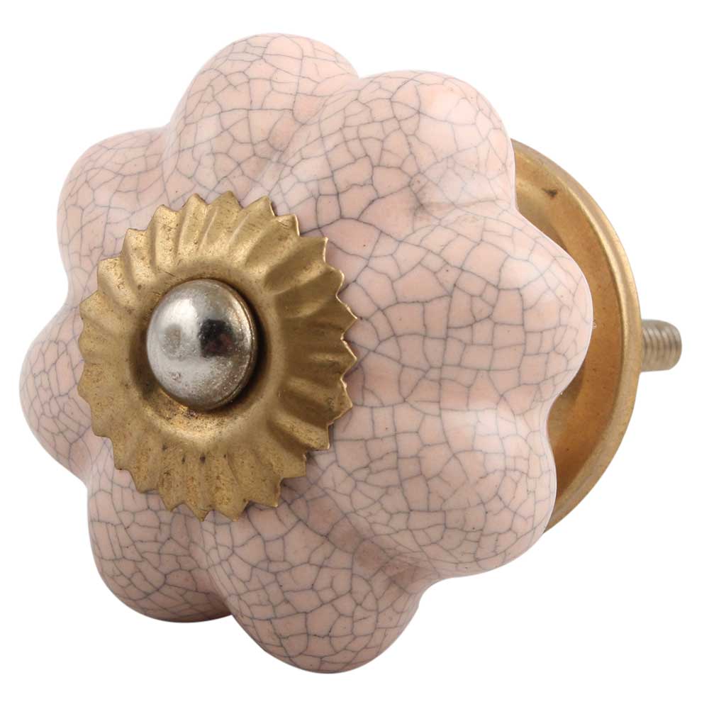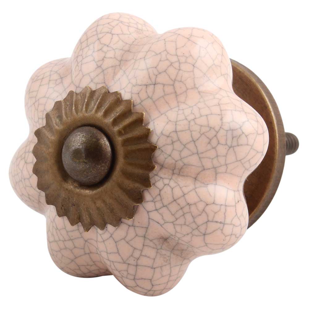 Baby Pink Crackle Ceramic Melon Cabinet Knob
