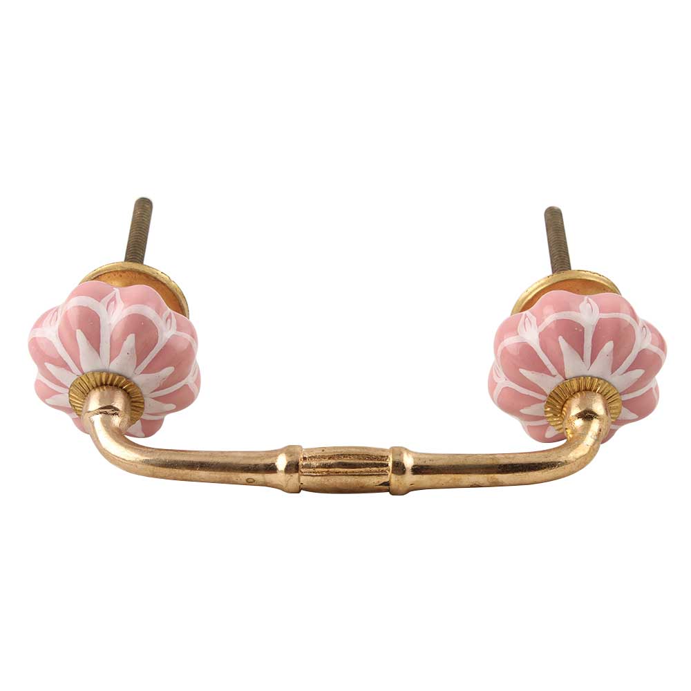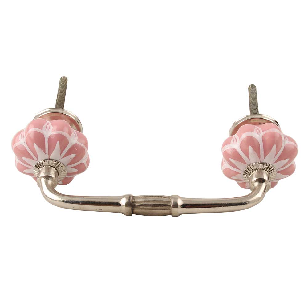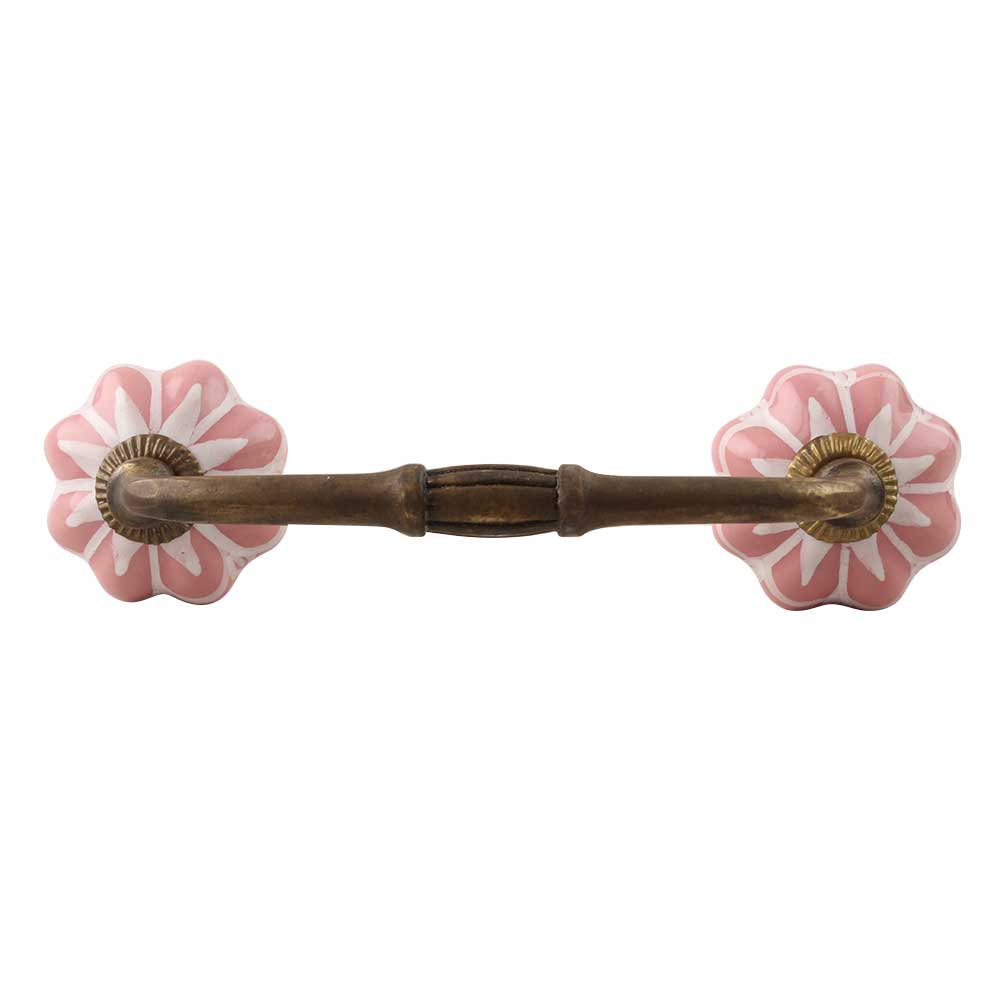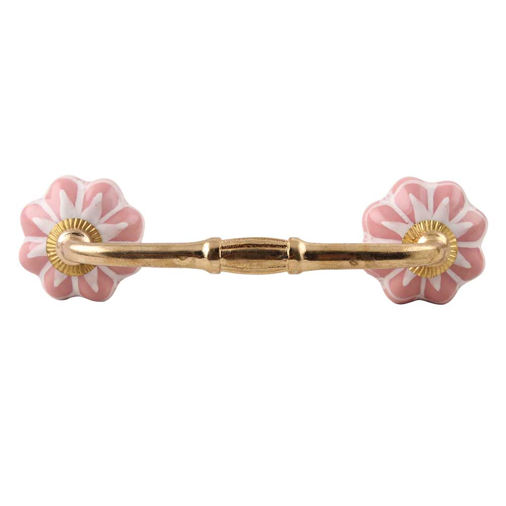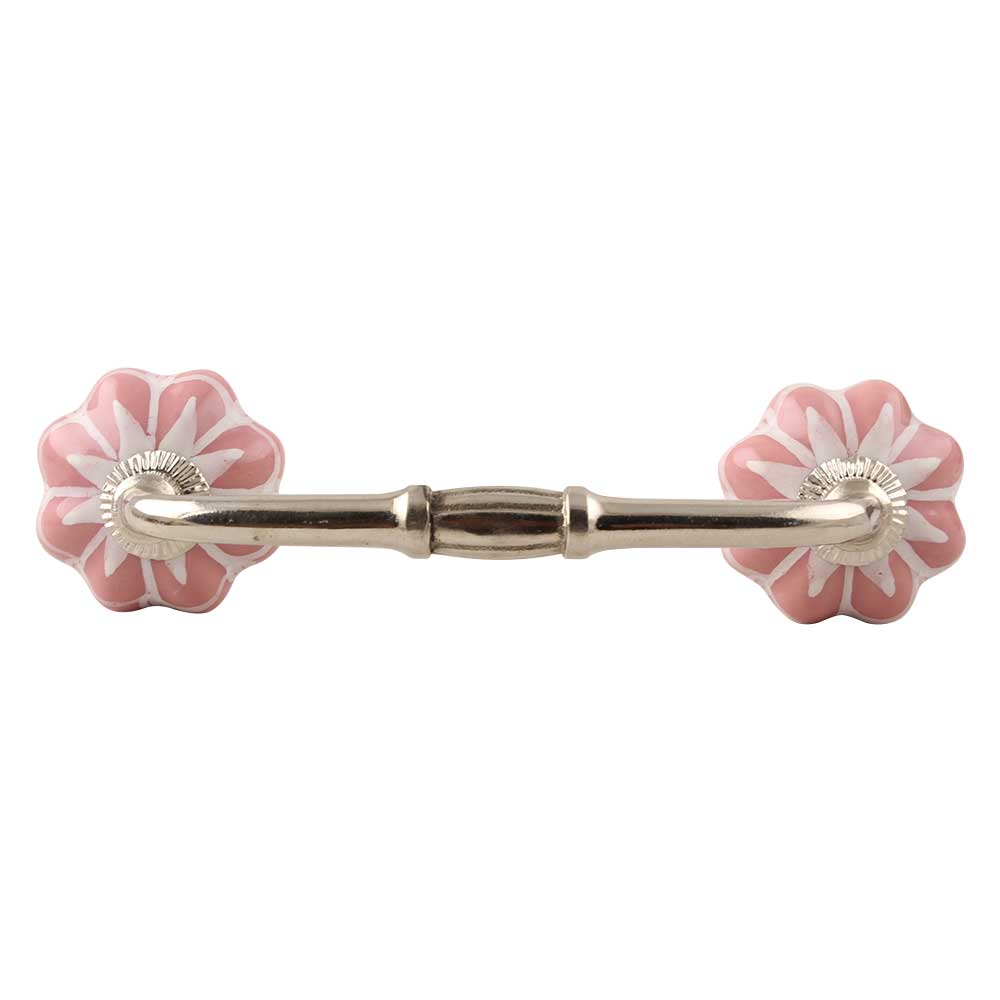 Baby Pink Flower Medium Ceramic Bridge Handle. Ideal for Drawer, Dresser, Cabinet, Wardrobe, Cupboard and Almirah etc.