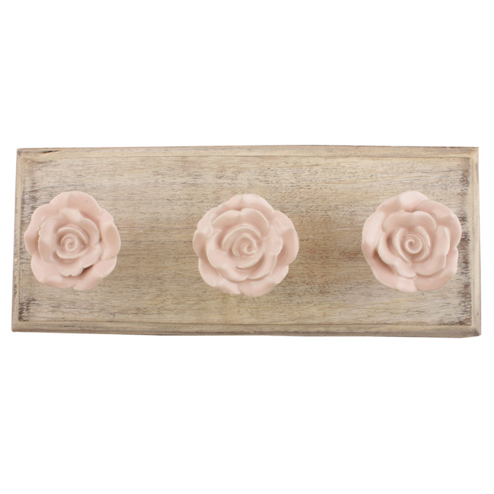 Baby Pink Rose Flower Ceramic Wooden Hook. A Perfect Complement to the Soft Tone of the Wood are these White Traditional Hat and Coat Hook Made of Genuine Porcelain and Brass. It can be used to Hang Jewelry, Leashes, Towels, Scarves, Light Weight Sweaters, Caps etc.