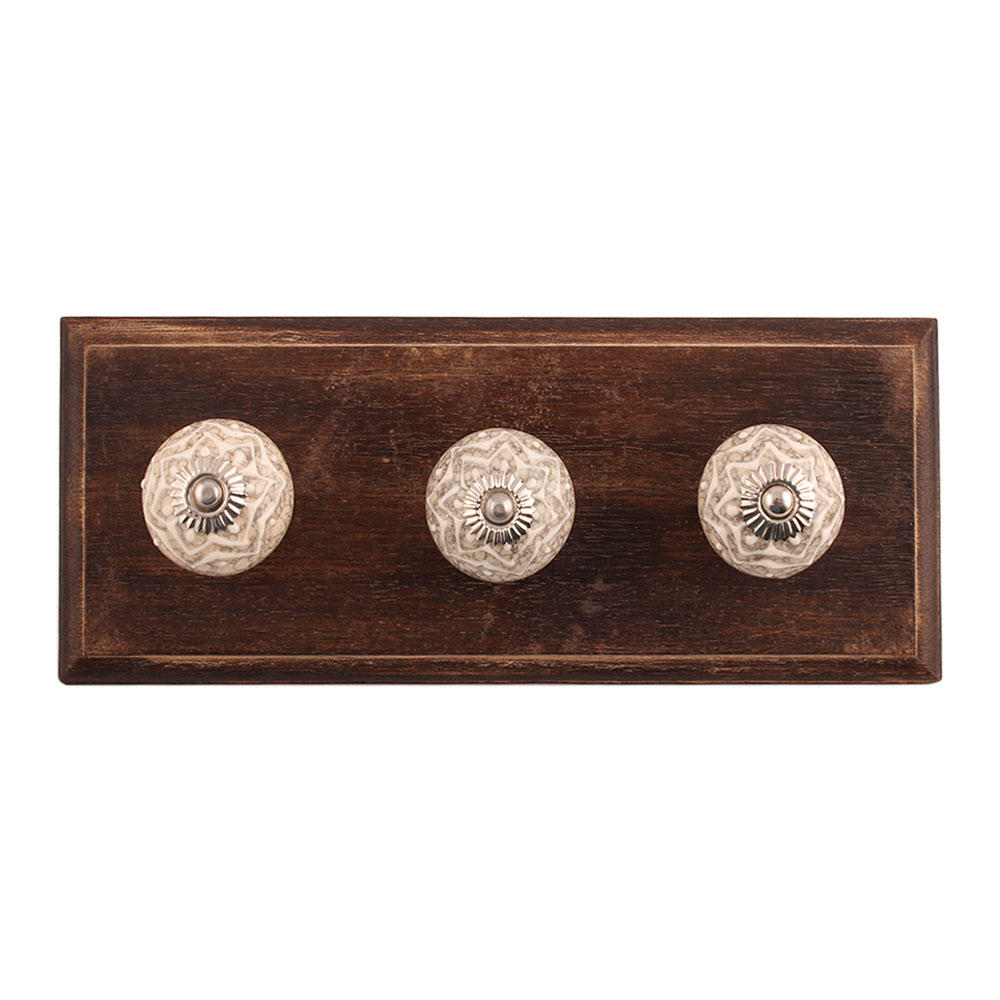 Balloon Flower Ceramic Crackle Wooden Hook. A Perfect Complement to the Soft Tone of the Wood are these White Traditional Hat & Coat Hook Made of Genuine Porcelain and Brass. It can be use to Hang Jewellery, Leashes, Towels, Scarves, Light Weight Sweaters, Caps Etc.