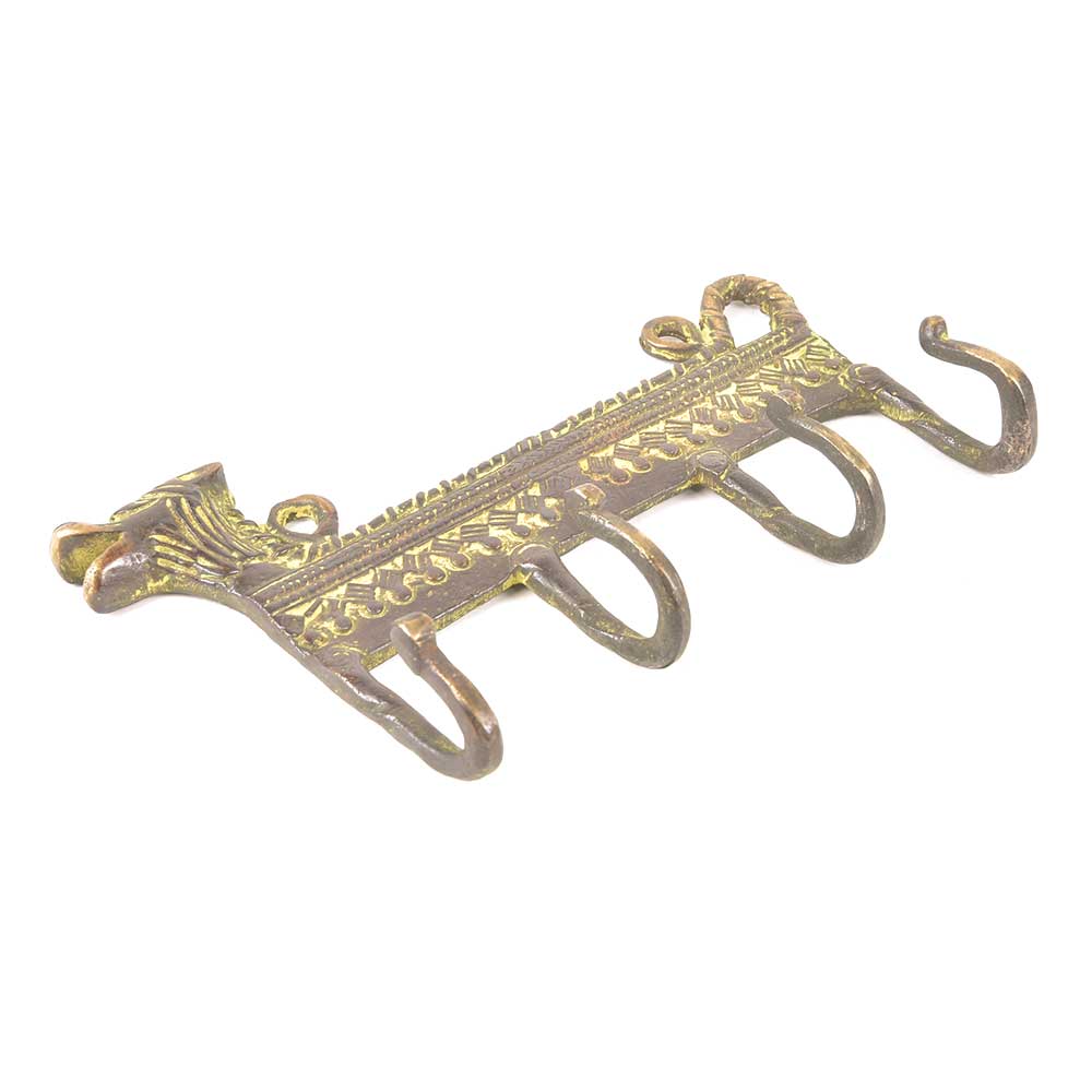 Majestic Pair of Engraved Lion Face Design Brass Hooks with Indian Motifs Displaying the Intricate Craftsmanship of the Skilled Artisans of Northern India. these can be Nailed Onto Any Surface with the Help of 2 Screws for Hanging Your Hats, Umbrellas, Light Coats, Caps, Scarves, and Other Such Pieces in Your Home or Work Place.