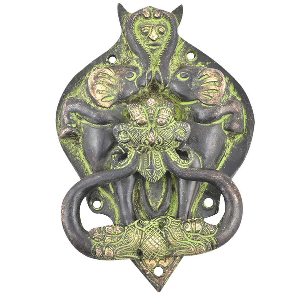Bat Face Black Bronze Door Knocker With Two Elephants. Ideal for your main doors.