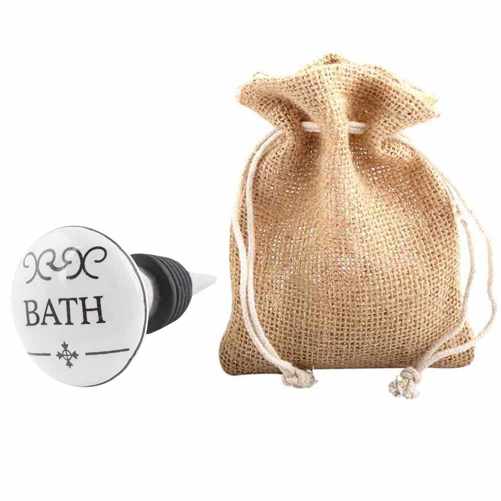 Bath Flat Ceramic Wine Bottle Stopper. Zinc Alloy Wine Bottle Stopper with Attractive Jute Bag Packaging.
