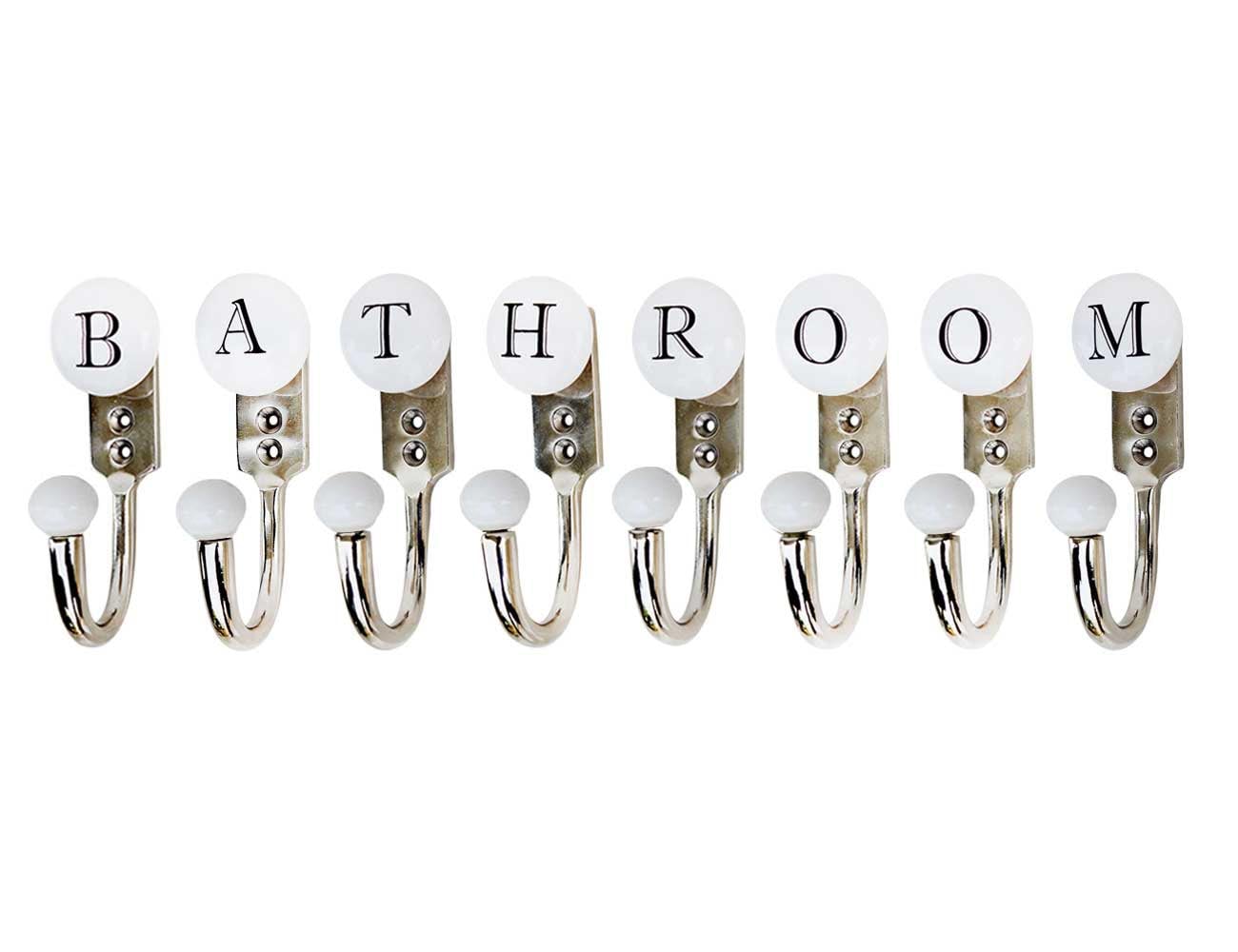 BATHROOM white and black alphabet hooks (combo pack). When put on wall or cabinet it is an art in itself. This hook is strong enough to hold your keys, tea cups, hand towels, cloths etc.