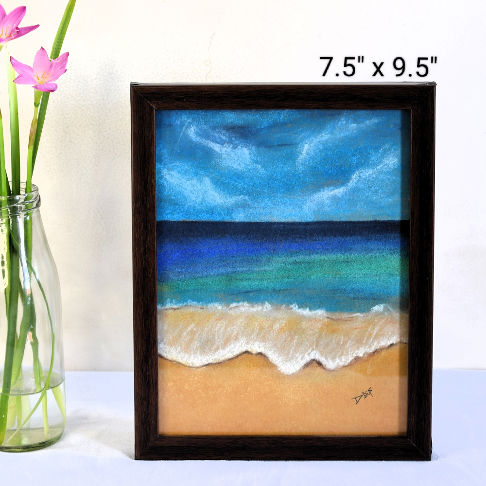Beach Art Soft Pastels Seascape on Paper by Artist Dimpana | 7.5 x 9.5 Inches