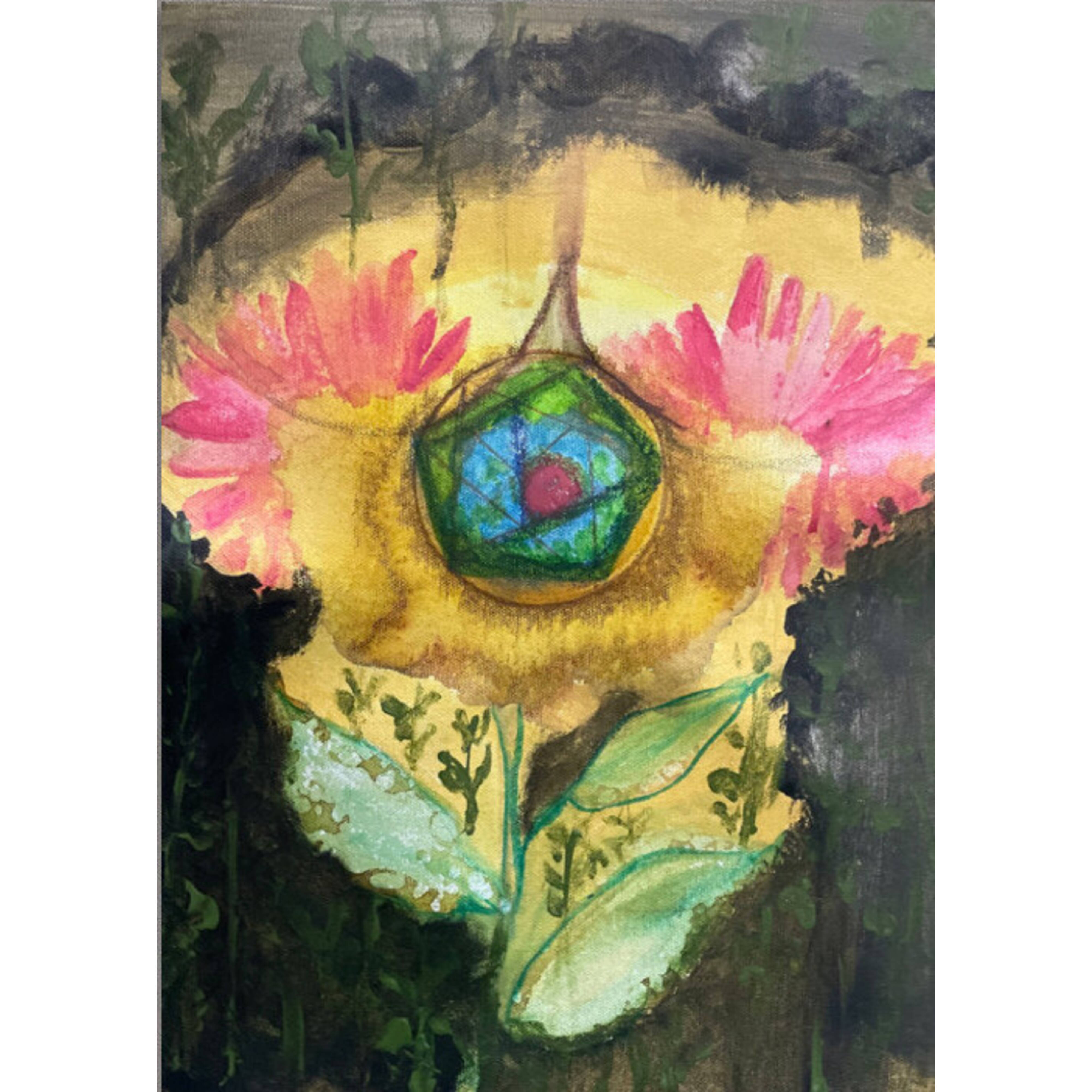"Yahe, the Vine of the Soul" is a mystical acrylic canvas that channels the spirit of deep connection and sacred transformation. At its heart lies a glowing geometric core—reminiscent of a soul's eye or an ancient medicine wheel—framed by blooming petals and organic vines. Inspired by the spiritual symbolism of nature and plant medicine, particularly ayahuasca (Yahe), this artwork represents the journey inward: where the soul uncoils, memory blossoms, and healing begins. Ethereal hues of pink, green, and gold blend into the canvas like visions in a dream, making this piece a powerful anchor for meditation, healing spaces, and soul-centric interiors.