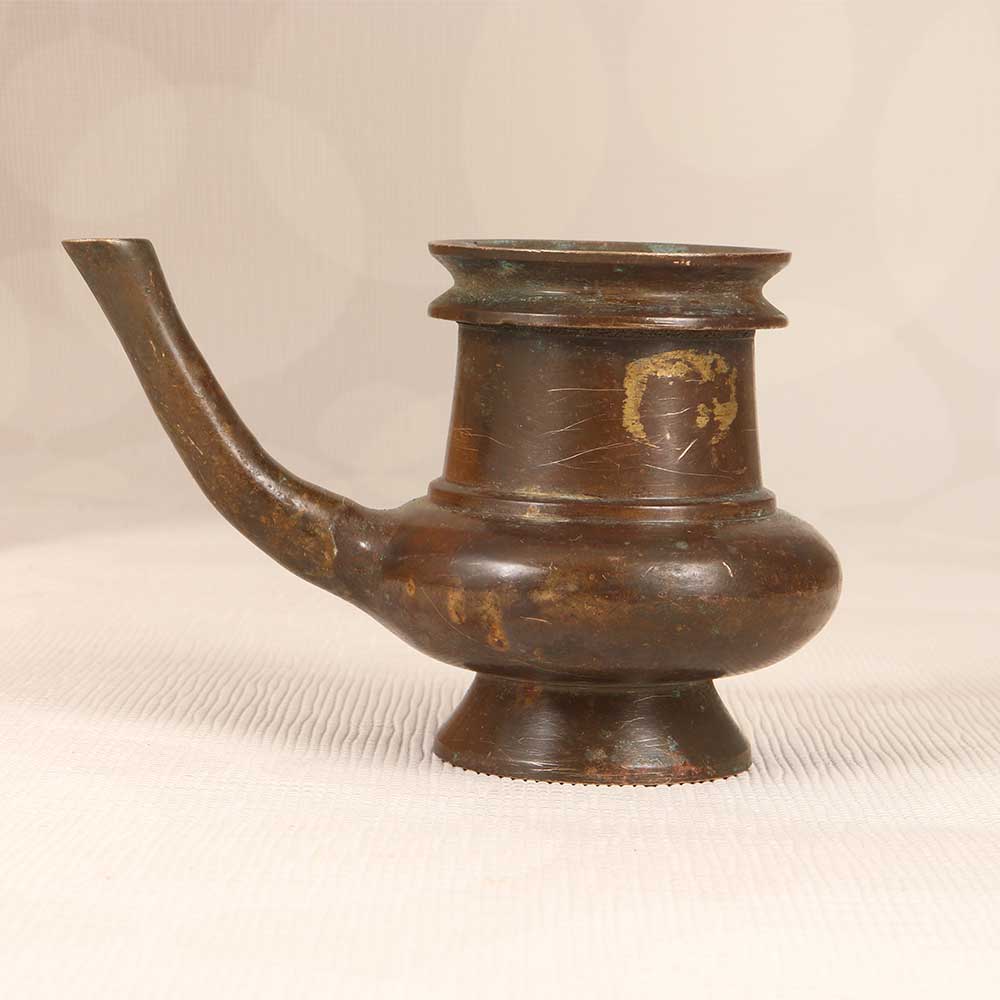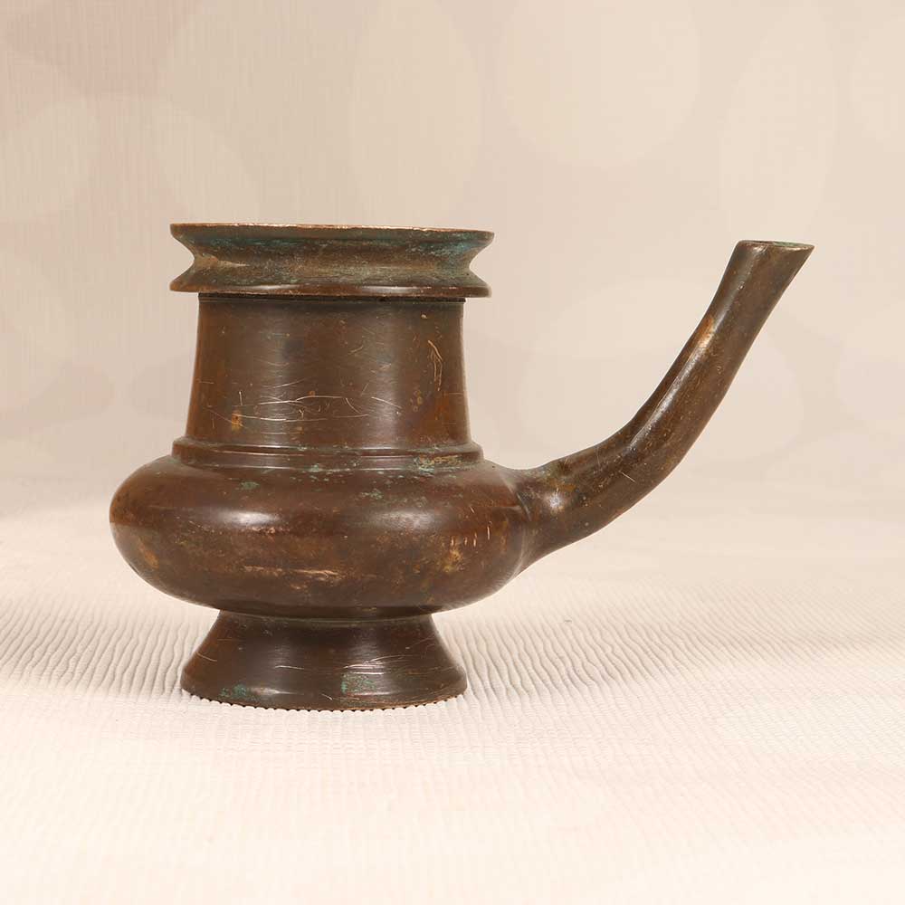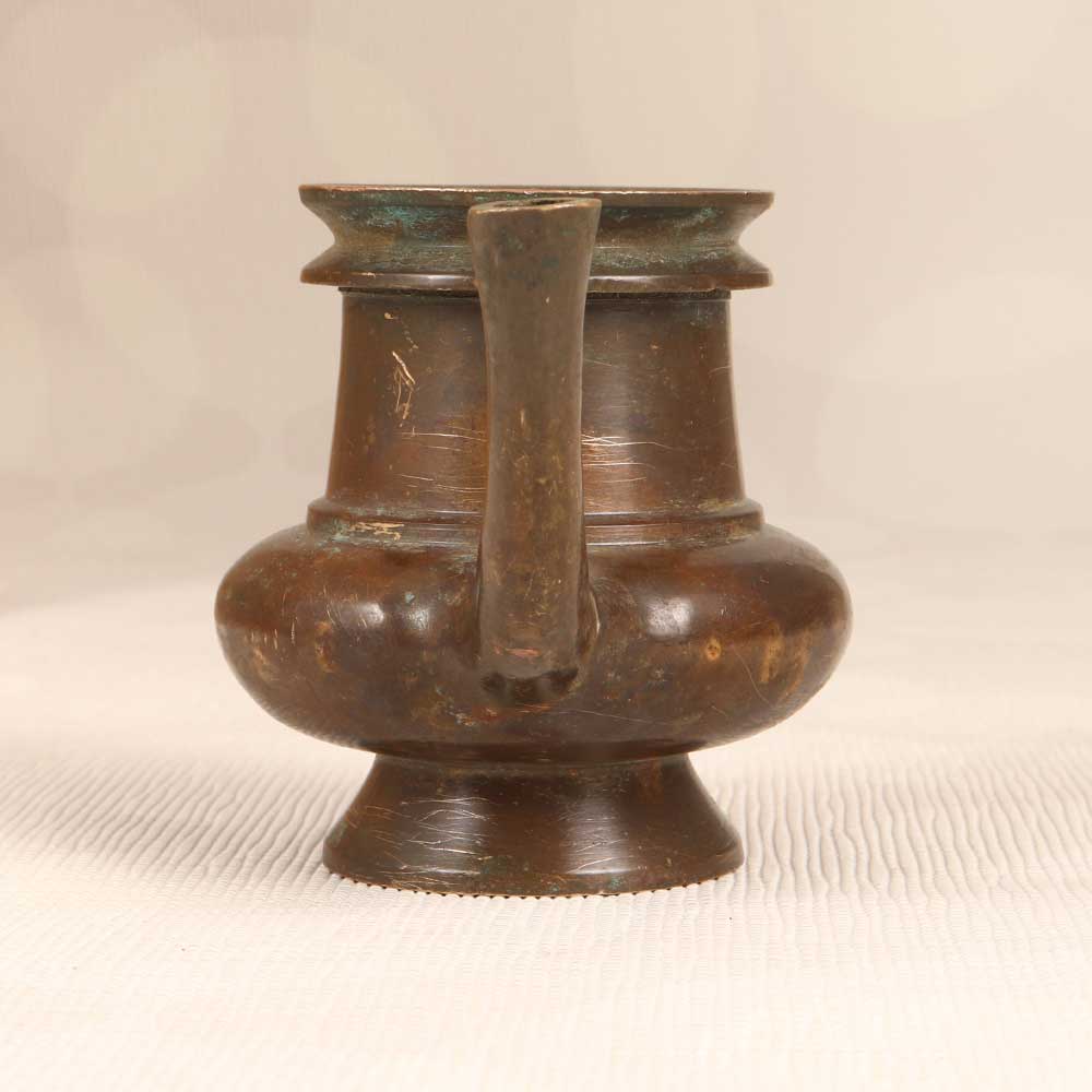 Add sacred splendor to your home with this gorgeous vintage brass holy water pot. The intricate detailing and elegant spout on this pot make it a beautiful way to store and dispense holy water for prayer and ritual. Bring spiritual tranquility into your daily devotions with this pot. The ritual of filling it with holy water and using it in prayer connects you to tradition and timeless faith. Pouring holy water from the graceful spout makes a meditative practice of blessing yourself or your home. The vintage brass will only become more handsome as it develops a patina from use over time. This pot is perfect for those who want a meaningful, sacred vessel to incorporate into their spiritual rituals. Using this pot to store holy water in your prayer space and dispense blessings with it transforms an everyday routine into sacred ritual. Let this pot become a cherished part of your faith traditions.
