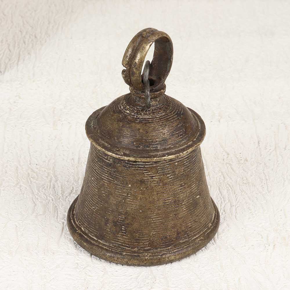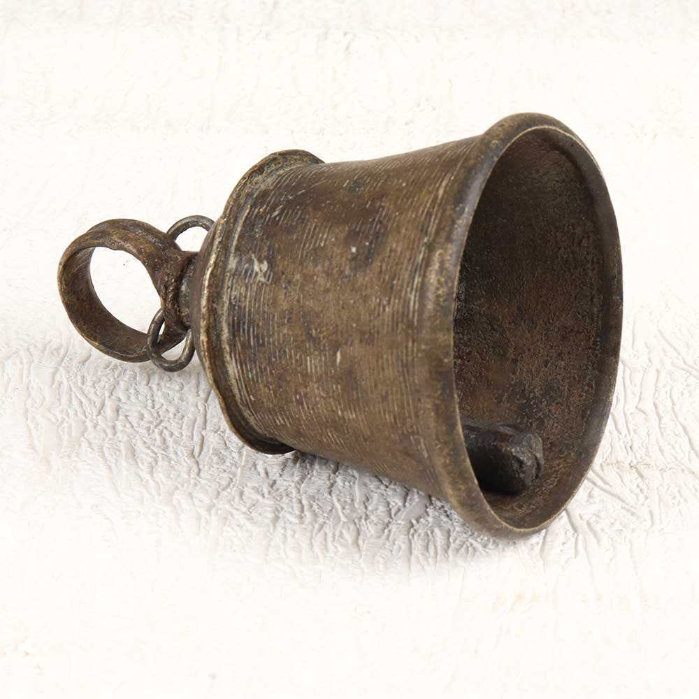 Transport your home to serenity with this beautiful vintage bell metal temple bell. The exquisite brown patina and understated design of this vintage bell allow it to complement any decor. Whether hung near your front door or in your meditation space, the pleasant chime creates an ambiance of tranquility. This high-quality bell metal bell rings with a rich, soothing hum to settle busy thoughts. If you're looking to invite more peace into your daily life, this vintage temple bell is ideal. The melodic tone helps quiet mental chatter, making it easier to be present and mindful. Give your home an authentic zen feel with this beautifully simplistic bell.