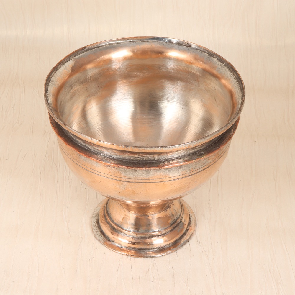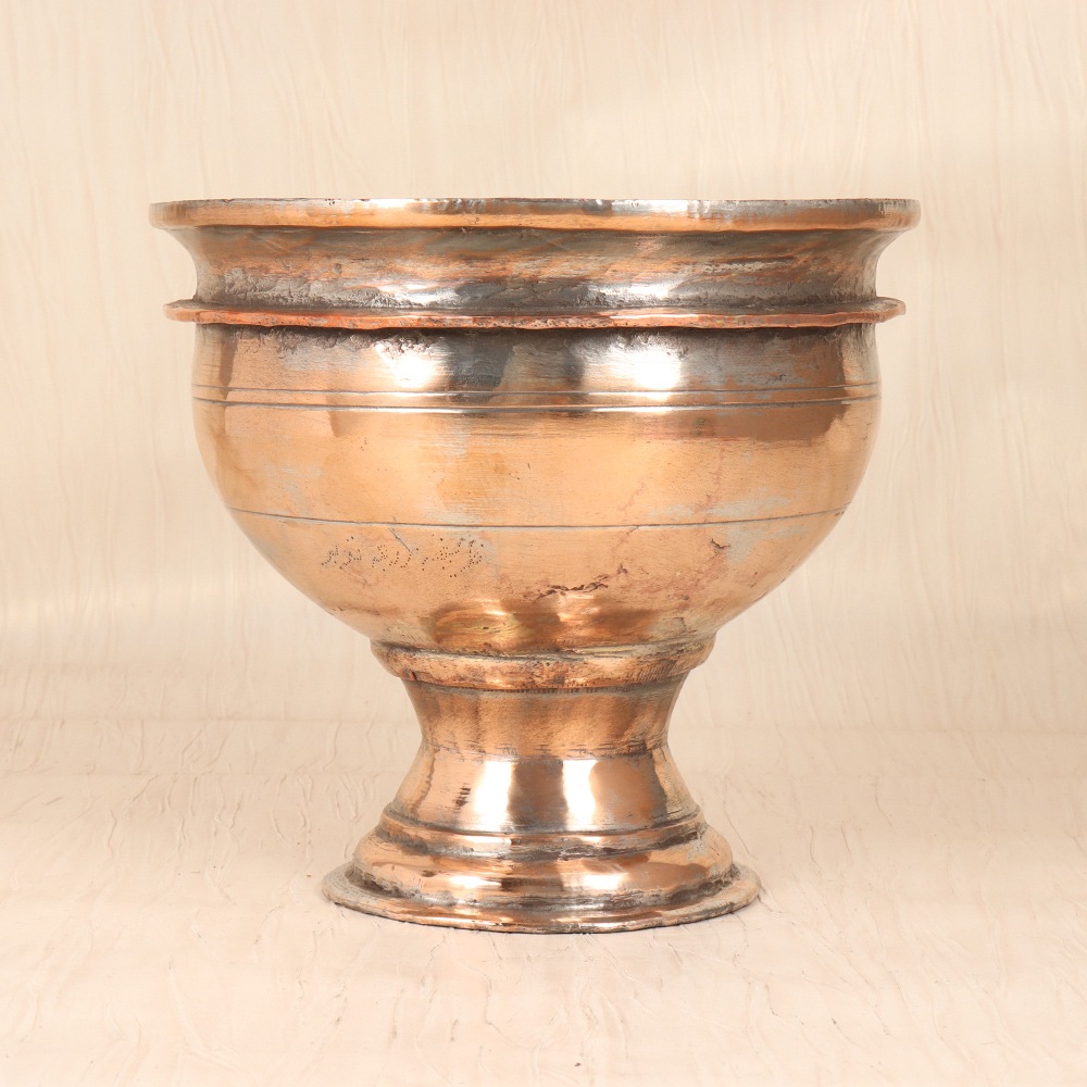 Bring the timeless beauty of Islamic art into your home with this stunning vintage copper pot. Crafted with meticulous attention to detail, this piece is a true work of art that will elevate any space. This vintage copper pot is more than just a container for your flowers - it's a captivating piece that tells a story. The plain finish allows the natural beauty of the copper to shine, while the Islamic-inspired design adds an elegant touch. Whether you place it on your dining table, mantelpiece, or side table, this pot will instantly elevate your space and bring a touch of timeless sophistication. Imagine the joy of arranging a vibrant bouquet in this stunning vessel, its warm copper tones complementing the vibrant hues of the flowers. Or use it to showcase your favorite succulents, creating a modern, minimalist display that showcases the natural beauty of the plant. This versatile pot is the perfect addition to any home, from the modern city loft to the cozy country cottage. Don't settle for ordinary flower pots - invest in a piece of art that will bring joy and beauty to your space for years to come. Elevate your home decor with this stunning vintage copper pot, a true testament to the enduring legacy of Islamic art.