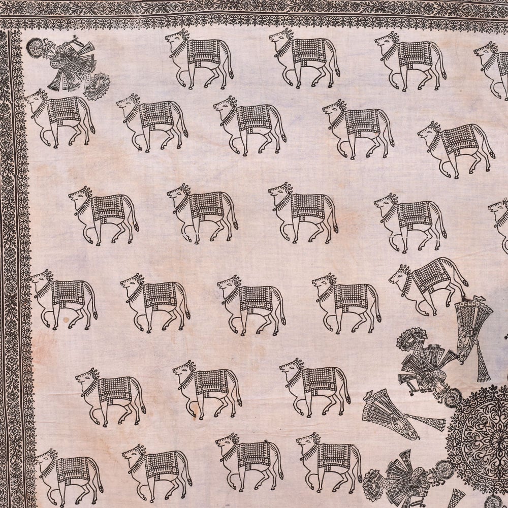 The Pichwai painting on fabric cloth is a masterpiece of Indian art that captures the essence of traditional Indian culture. This painting depicts a beautiful pattern in the centre, surrounded by male and female figures playing musical instruments. The intricate details and vibrant colours used by the professional Indian artists make this painting an exquisite piece of art. One of the most striking features of this Pichwai painting is the depiction of cows throughout the whole cloth. Cows are considered sacred in Indian culture and are believed to bring good fortune and prosperity. This painting is perfect for adorning your prayer room or temple as it represents the divine and invokes a feeling of spirituality. It can also be hung in the living room as a decorative piece to add a touch of Indian heritage to your home. This Pichwai painting on fabric cloth is an ideal gift for your family, friends, or relatives on special or festive occasions. The intricate details and multi-colours of this painting make it a timeless piece of art that will be treasured for years to come.