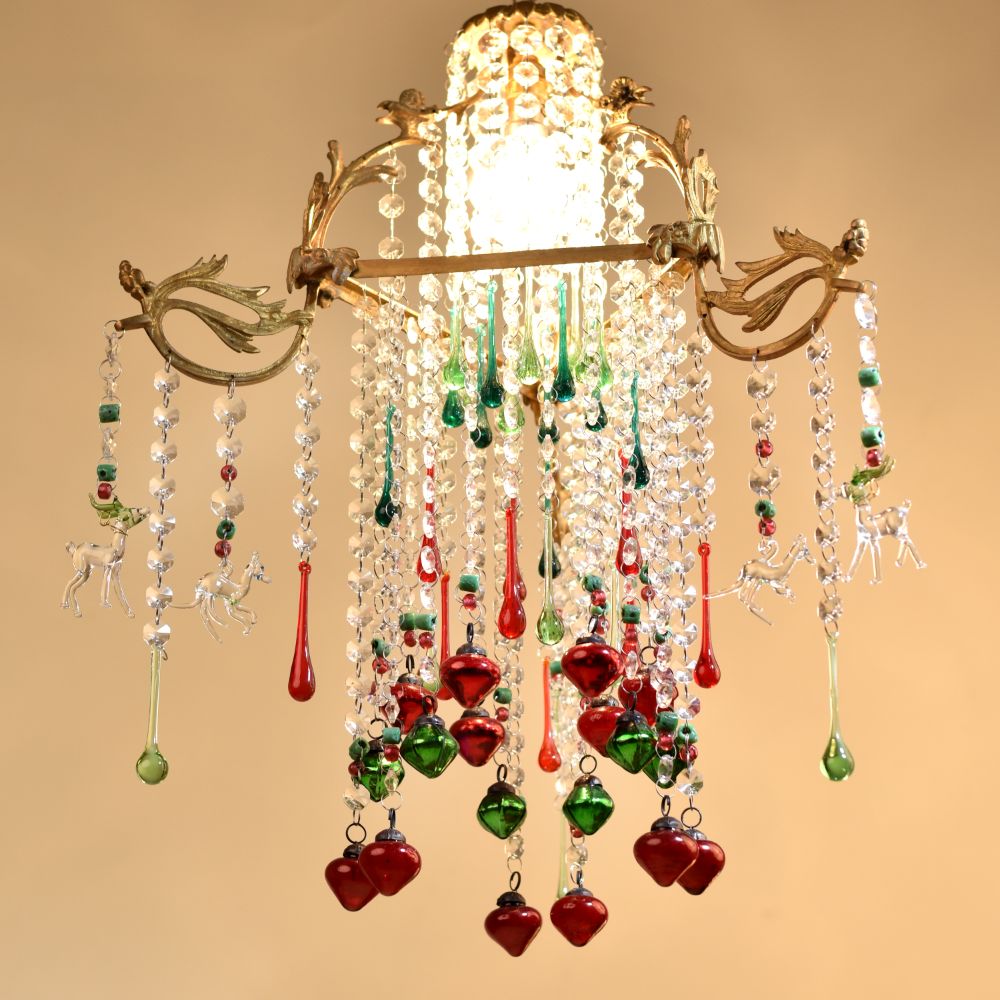 Buy a Crystal Clear Glass and Brass Chandelier online which is a timeless piece of artistry that seamlessly blends elegance and charm. Crafted with precision from high-quality brass and crystal-clear glass, this chandelier is a stunning addition to any space, be it your home, restaurant, hotel, or cafe. At its core, the chandelier holds a radiant bulb that illuminates the surrounding area with a soft, warm glow, creating a welcoming ambiance for all. Surrounding the central light source are delicately designed hanging animal glass ornaments, each adorned with a captivating crystal clear finish that reflects and refracts light, enhancing its splendour. Adding a playful touch, the chandelier features multi-coloured hanging accents that add a burst of vibrancy and liveliness to any setting. This chandelier's adorable design makes it an enchanting focal point, becoming an eye-catching decoration for any room. Its versatility knows no bounds; it elevates the ambiance of your home, adds opulence to the dining experience in a restaurant, impresses guests in a hotel's grand foyer, and brings a touch of whimsy to a cafe's decor. Furthermore, this stunning chandelier makes for an ideal gift for your loved ones on special, festive, or auspicious occasions. By gifting this masterpiece, you share not only a captivating decoration but also the essence of elegance and sophistication.
