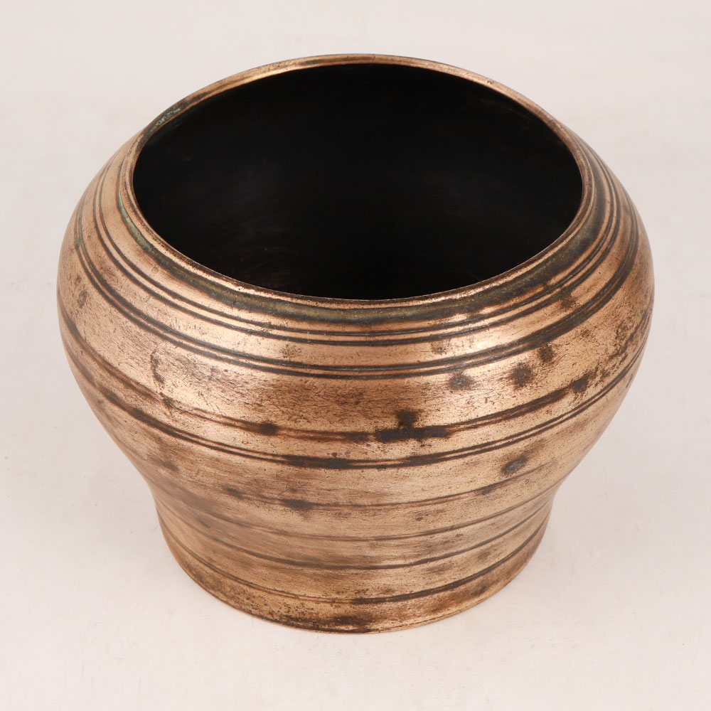 Immerse your space in a divine aura with our exquisite Brass Holy Pot. Crafted with meticulous attention by professional Indian artisans, this holy pot embodies the essence of spirituality and positive energy. Made from high-quality brass, its antique brown finish exudes timeless elegance, adding a touch of antiquity to any setting. Designed to hold sacred water for rituals, this pot serves as a vessel of positivity, emanating good vibes throughout its surroundings. Its handmade craftsmanship ensures uniqueness and authenticity, making it a symbol of devotion and artistry. This versatile masterpiece transcends its spiritual purpose to become a captivating decorative element. Whether placed at home, office, restaurant, hotel, or cafe, it exudes charm and grace. Use it as a flower pot to infuse your space with natural beauty or include it in your vintage collection to cherish the legacy of craftsmanship. The Brass Holy Pot makes for an ideal gift, spreading blessings on special occasions, festivals, or auspicious moments. Its presence not only enriches spaces but also hearts, making it a cherished token of love and spirituality.