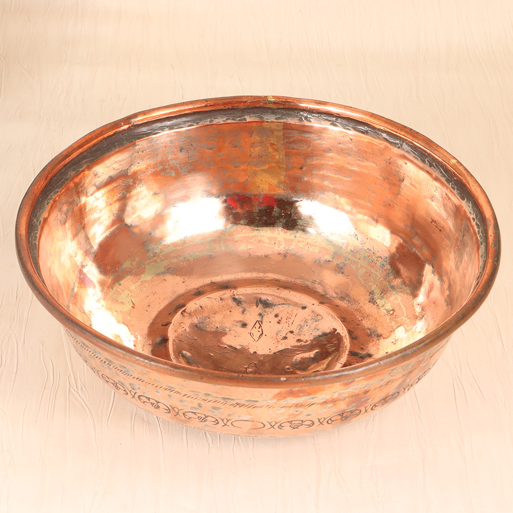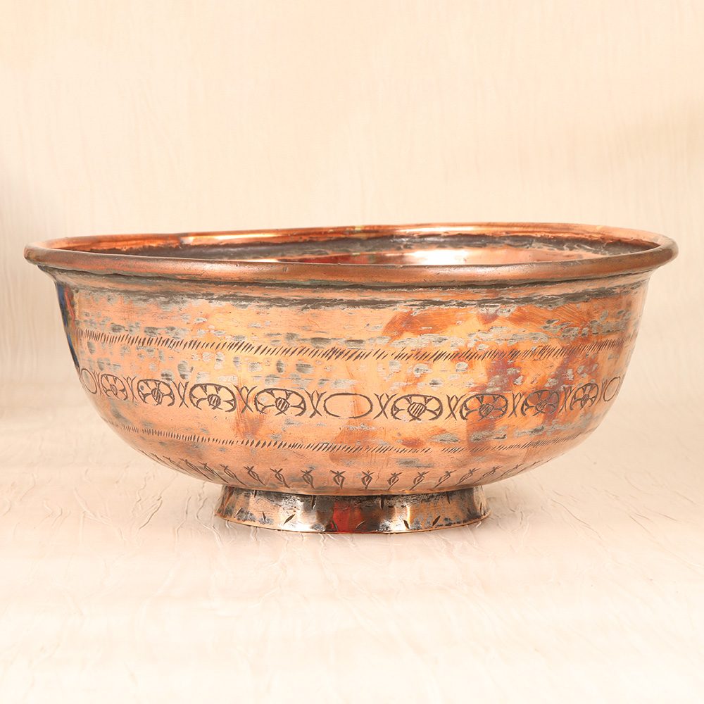 Bring the captivating artistry of the Islamic world into your home with our exquisite Vintage Copper Islamic Bowl. Crafted with meticulous attention to detail in the renowned Peshawari style, this stunning piece is a true testament to the rich cultural heritage of the region. This captivating Vintage Copper Islamic Bowl is more than just a decorative accent – it's a work of art that will elevate the ambiance of any room. Imagine the way the warm, glowing copper will reflect the light, casting a mesmerizing glow and adding a touch of sophistication to your space. Whether you're looking to infuse your home with a sense of cultural richness or simply seeking a unique and eye-catching piece to showcase your refined taste, this Vintage Copper Islamic Bowl is the perfect choice. Immerse yourself in the timeless beauty of Peshawari craftsmanship and let this stunning bowl become the centerpiece of your décor.