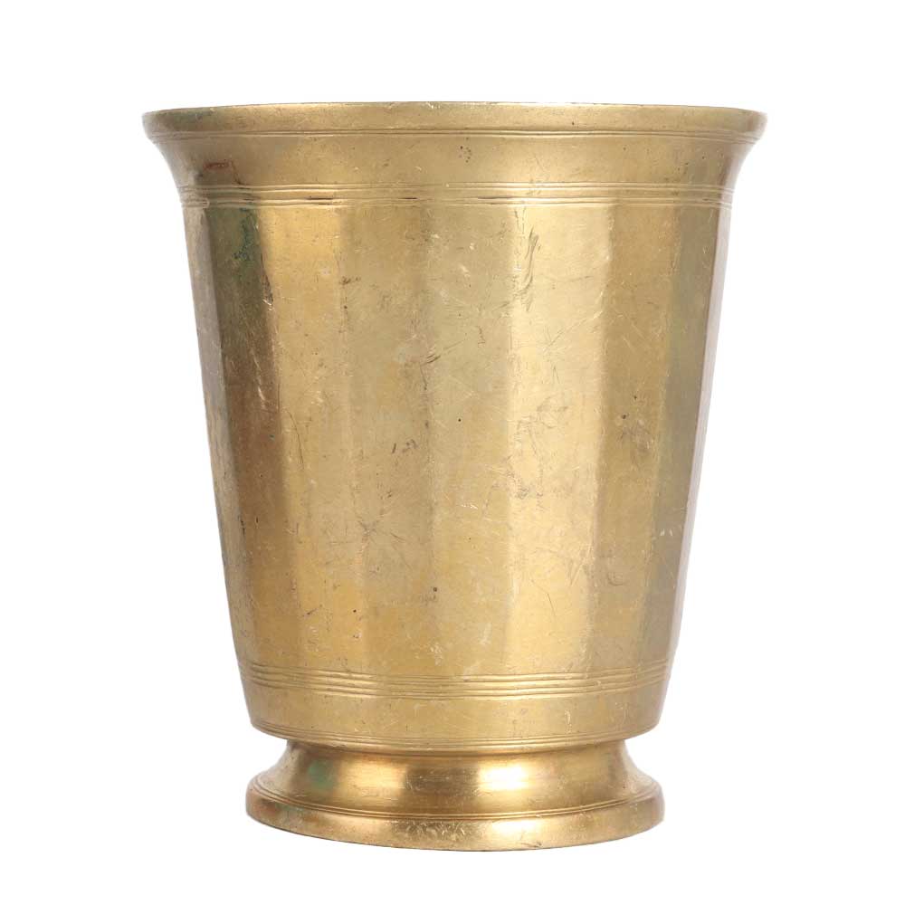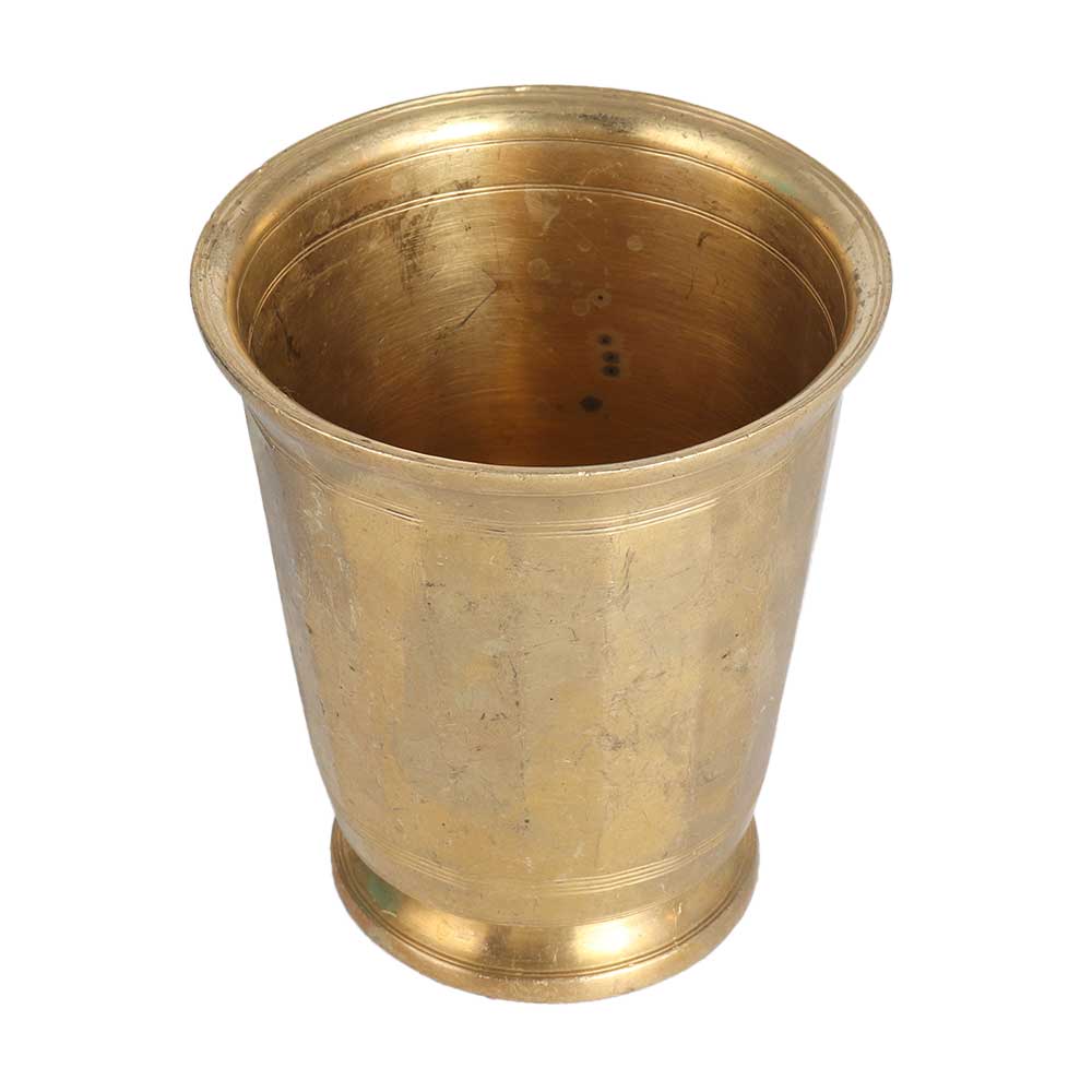 A holy glass made of the best brass that leaves a remarkable impression in interiors. It has a stand at the bottom to better hold on the surface. This golden finish cup is handcrafted by local Indian artisans from South India using traditional methods. Brass glasses were used in Indian households on special occasions and to serve water to guests. It is also used to hold milk or holy water during havans, rituals and auspicious functions. Decorate your home, office, hotel or restaurant with this incredible brass cup and it will be an eye catcher for your guests and visitors. Gift this brass cup to your loved ones on a special or festive occasion.