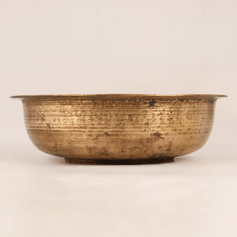 Discover the exquisite allure of our handcrafted brass bowl, a timeless masterpiece that seamlessly combines artistry and utility. Meticulously fashioned from the finest quality brass, this captivating bowl boasts an enchanting antique brown finish that evokes an aura of vintage elegance. Crafted by the skilled hands of Indian artisans, each piece is a testament to their unparalleled craftsmanship and dedication to preserving traditional techniques. This versatile brass bowl is a perfect addition to various settings, be it your home, office, restaurant, hotel, or cafe. Its captivating presence graces spaces with both decoration and spiritual significance, making it an ideal adornment for prayer rooms. The bowl's versatile design extends to its role as a divine bathtub in temples, adding a touch of sanctity to religious rituals. Its regal charm also shines when displayed in exhibitions, vintage collections, or simply as an aesthetic statement. Elevate any occasion by presenting this masterpiece to your loved ones, infusing special, festive, or auspicious moments with the timeless charm of this brass bowl.