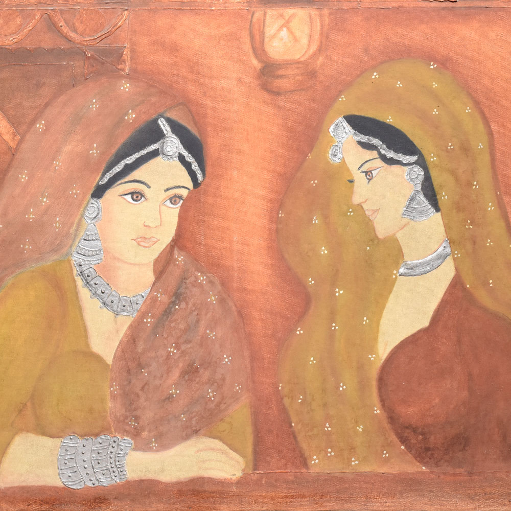 - Features two elegant ladies in traditional Rajasthan attire
