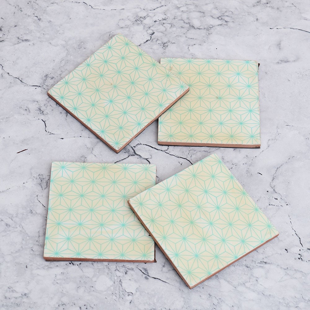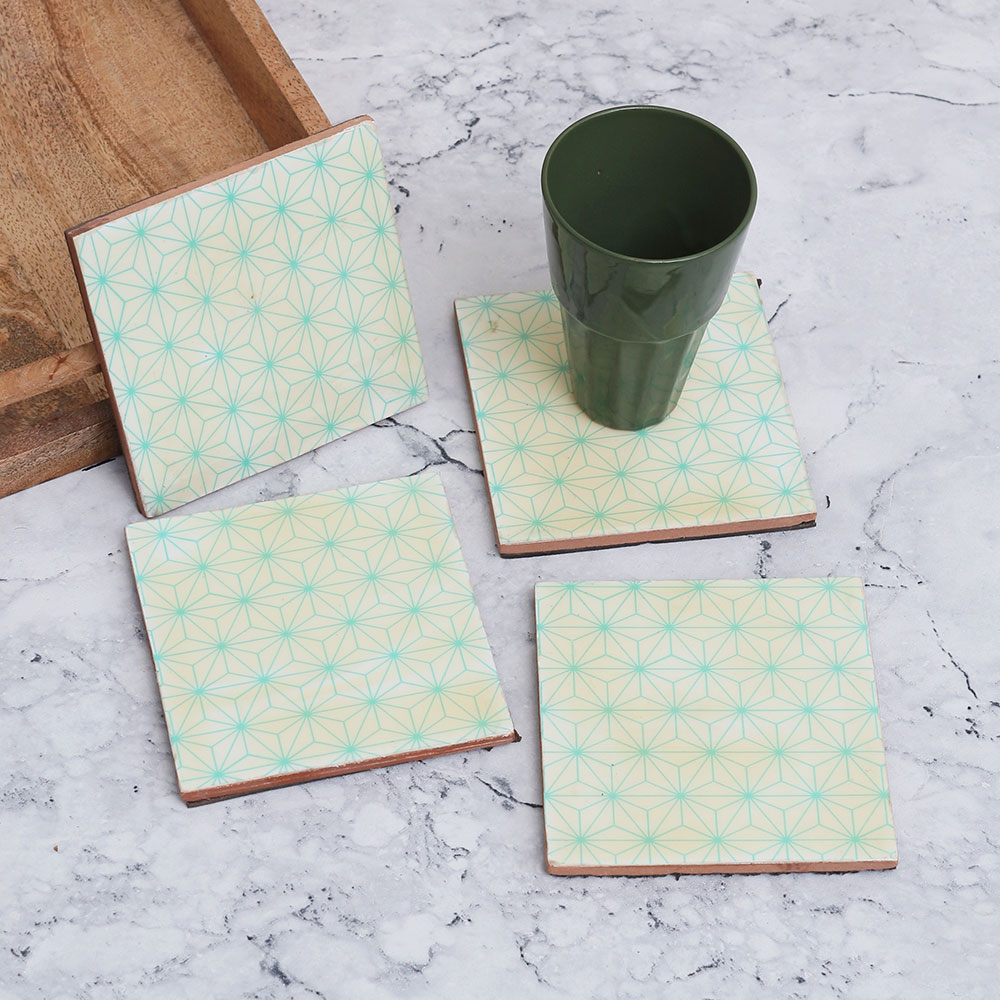 Buy a Pack of 4 wooden coasters online and have them delivered directly to your home. These coaster sets are handcrafted by skilled Indian artisans using the finest quality wood available. Each coaster showcases a square shape, symbolizing balance and harmony. Adorned with a captivating sky blue and white pattern, these coasters effortlessly blend classic aesthetics with contemporary design. The stunning antique finish adds a touch of sophistication, making these coasters not just practical but also decorative pieces for your home or office. Crafted to perfection, these wooden coasters are an ideal solution to protect your surfaces from unsightly stains caused by water, tea, juice, or coffee glasses. Their durable construction ensures long-lasting use, making them perfect for homes, offices, restaurants, hotels, or cafes. Looking for the best wooden coaster set? Look no further! These handmade wooden coasters are a testament to exceptional craftsmanship and attention to detail. Furthermore, they make perfect gifts for your loved fours on special or festive occasions.