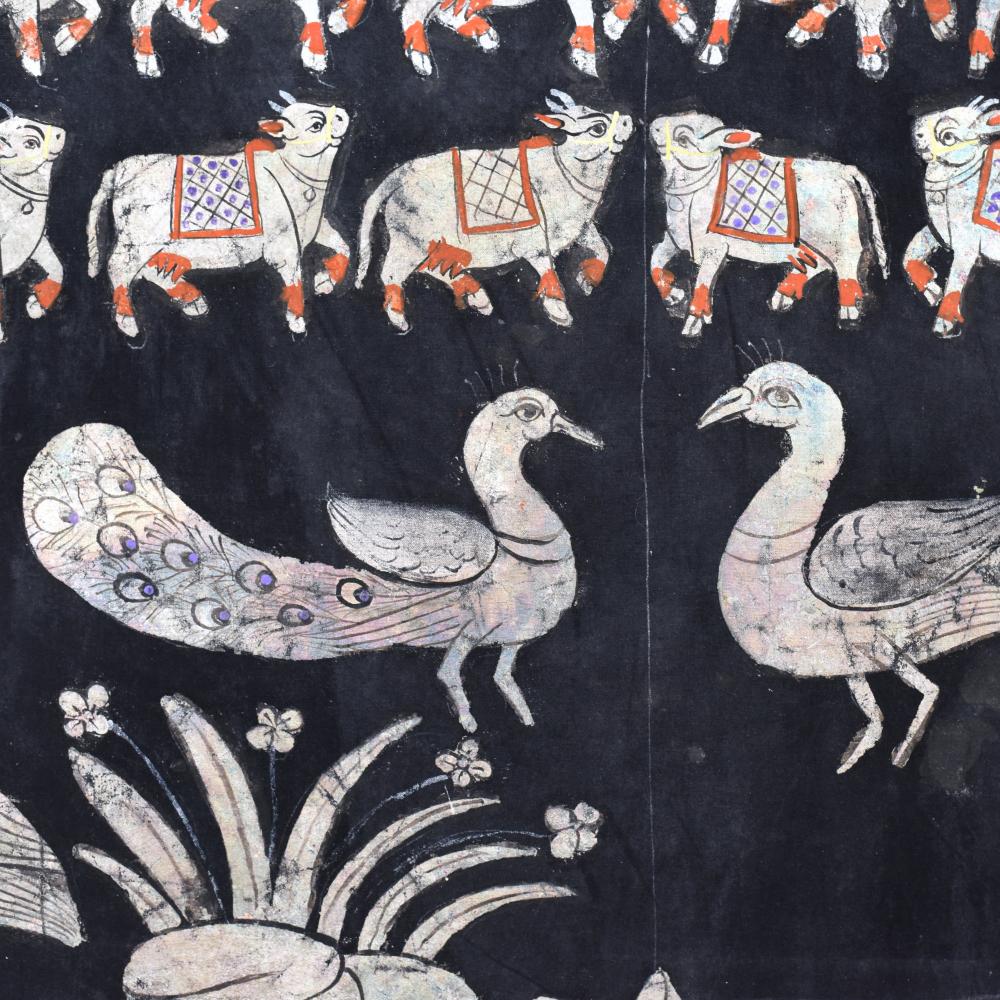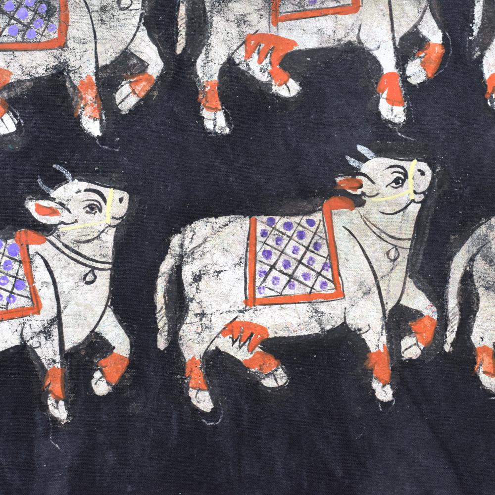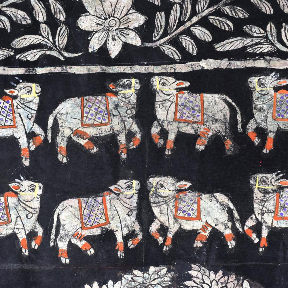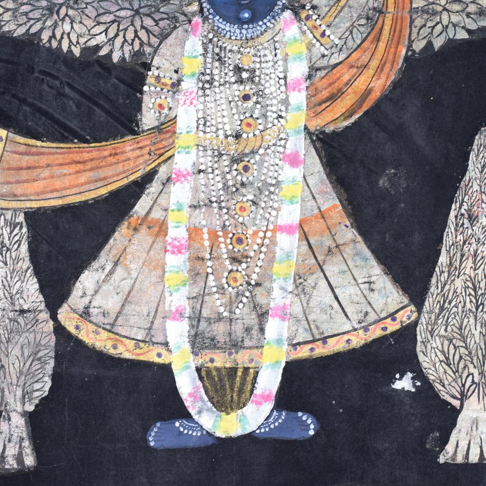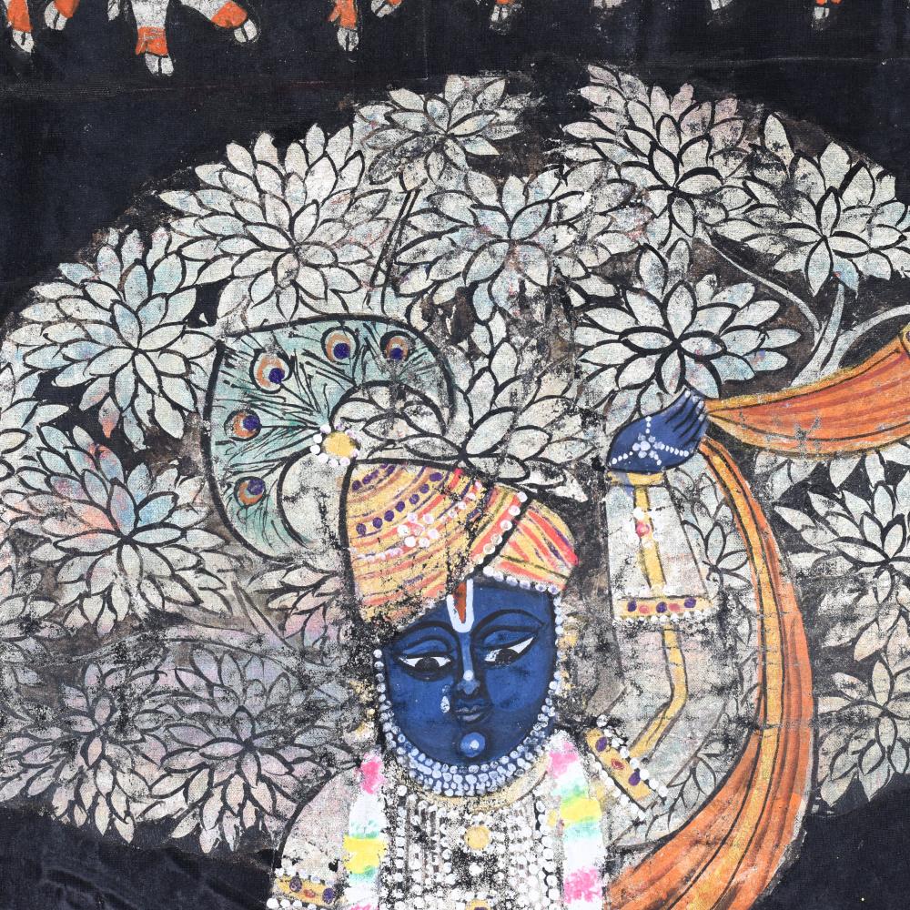 Immerse yourself in the divine splendor of the Lord Krishna with this captivating cloth pichwai painting without frame. Masterfully crafted, this work of art transports you to the serene landscapes of ancient India, where the beloved deity stands tall, his regal presence commanding attention. This pichwai painting is more than just a decoration - it's a gateway to a deeper spiritual connection. Display it in your home or sacred space, and let the energy of Lord Krishna's benevolent gaze inspire you. Immerse yourself in the rich cultural heritage of India and elevate your living space with this mesmerizing work of art. Whether you're a devoted Krishna follower or simply appreciate the beauty of traditional Indian art, this pichwai painting is a must-have addition to your collection. Bring the essence of the divine into your life and let it radiate throughout your sanctuary, filling your heart and soul with a sense of peace and harmony.