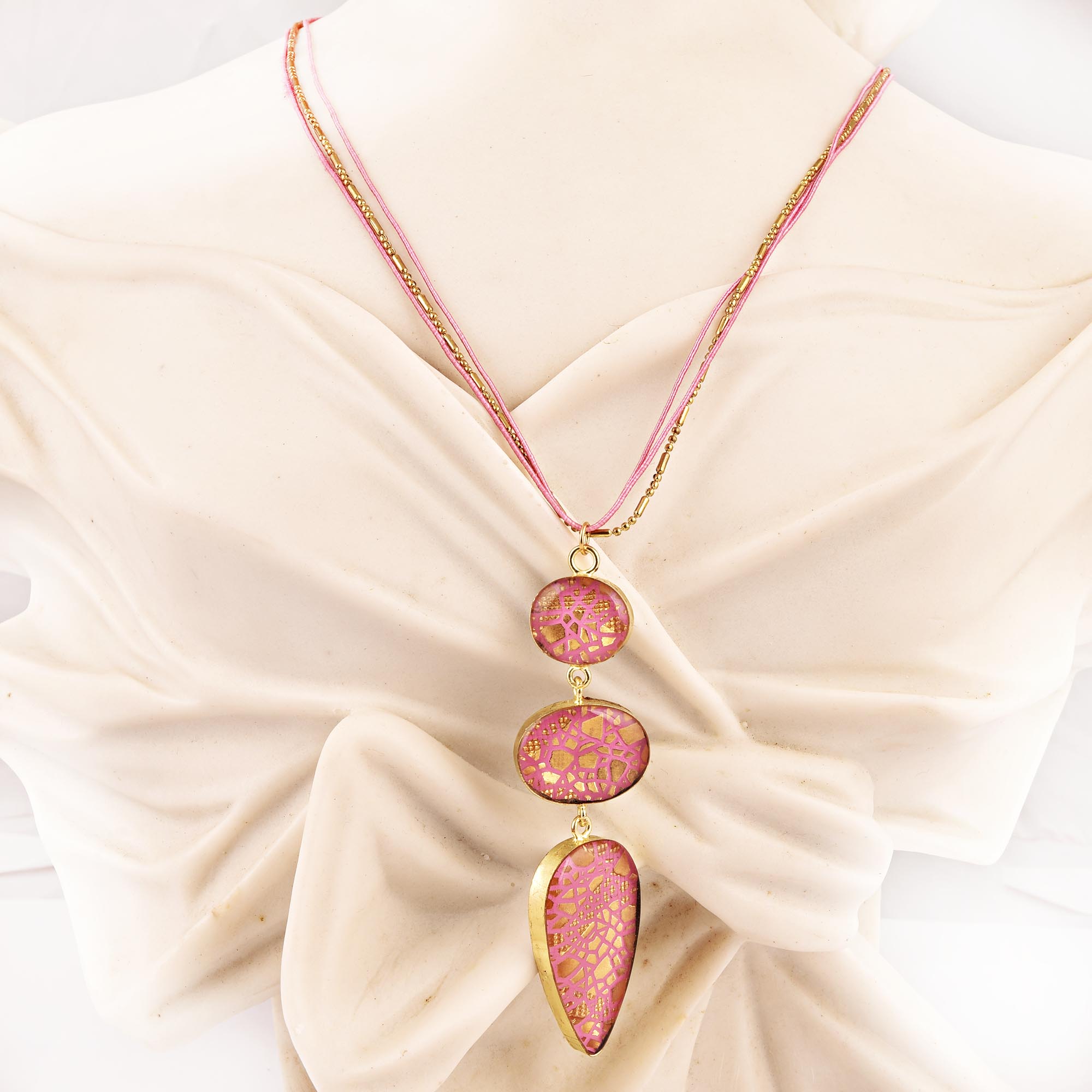Beautiful Pink Diva Necklace Jewellery. Resin, Glass, Cotton and Brass String In Lobster Clasp.