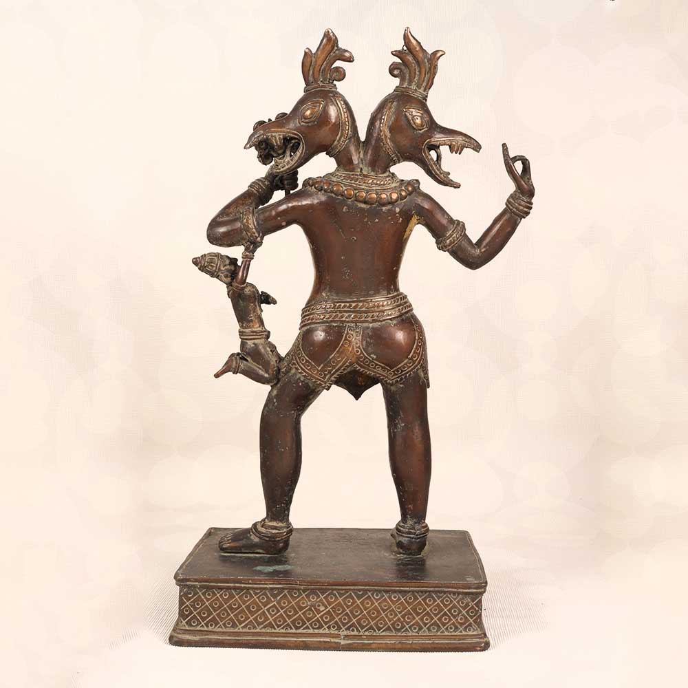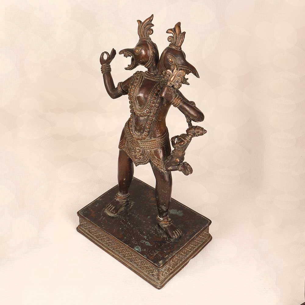 Add a divine touch to your home decor with the brass God Varaha Statue. This stunning antique brass sculpture depicts Lord Varaha, the boar avatar of Lord Vishnu. Its finely crafted details and vintage patina will captivate you. This brass Varaha statue stands as a beautiful representation of the Lord's third avatar. According to Hindu mythology, Lord Vishnu incarnated as Varaha to rescue Goddess Earth from the ocean. Bring home this divine piece of Himalayan Art to add an aura of spirituality to your living room, office, or puja space. Its vintage styling and fine craftsmanship will upgrade any decor. For devotees of Lord Vishnu, this Varaha statue makes for a meaningful addition to your home temple. Its reverent depiction of the Lord's avatar serves as a daily reminder of His divine grace.