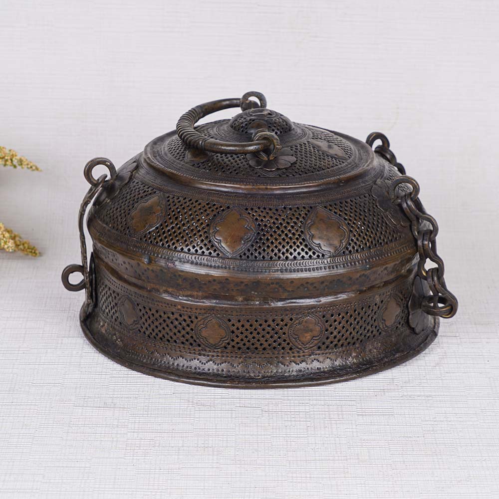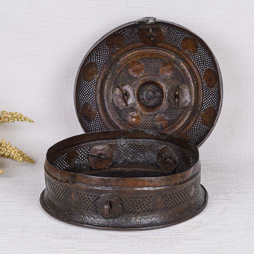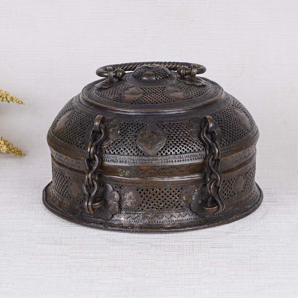 A handmade brass jewelry box, expertly crafted by highly skilled and experienced Indian artisans using traditional techniques. This exceptional piece showcases a captivating black finish, imparting a timeless vintage allure. Adorned with enchanting engraved patterns, it exudes an air of elegance and sophistication. Featuring a convenient handle atop, this jewelry box offers portability with ease. Its secure latch ensures your precious possessions are safely stored. Originally designed to house jewelry in households, it has seamlessly transitioned into a versatile home accessory suitable for storing jewelry or cherished items. Moreover, it serves as a remarkable decorative piece, perfect for embellishing your home, office, restaurant, or hotel. This designer jewelry box is a sight to behold and can effortlessly captivate audiences when displayed at exhibitions or museums. With its timeless charm, it also serves as an ideal gift for your loved ones on special or festive occasions. Indulge in the allure of this remarkable jewelry box, designed for women seeking a blend of elegance and functionality.
