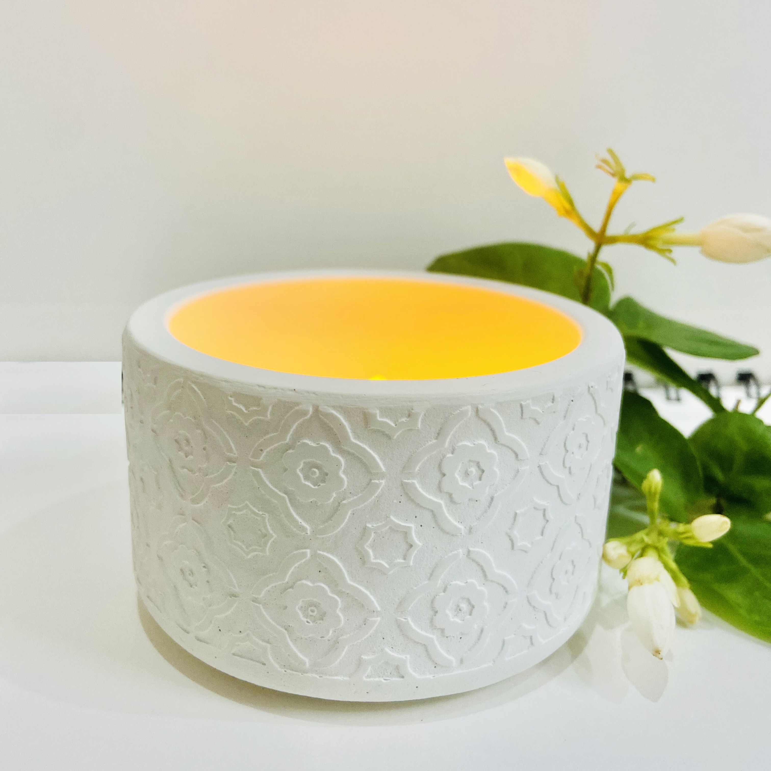 White Cemented Candle Holder/Tea light holder a perfect for home decor and festive Season.