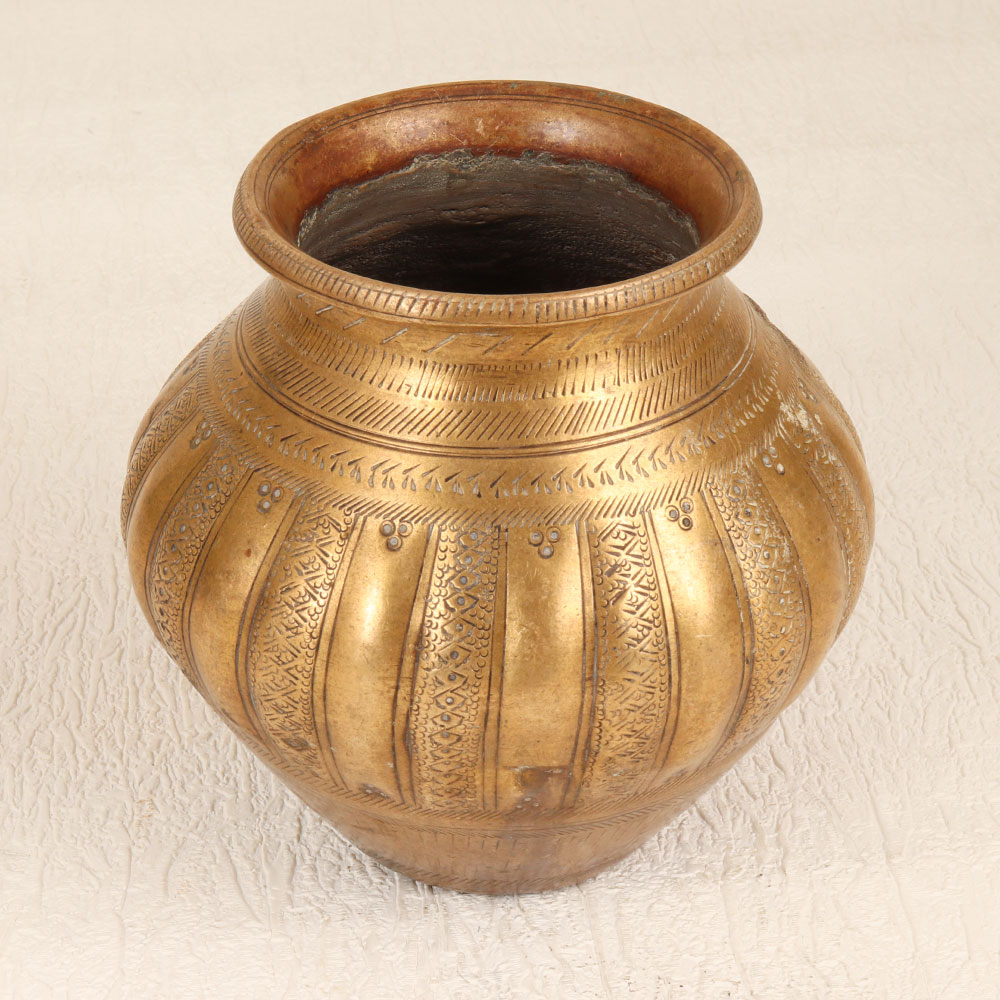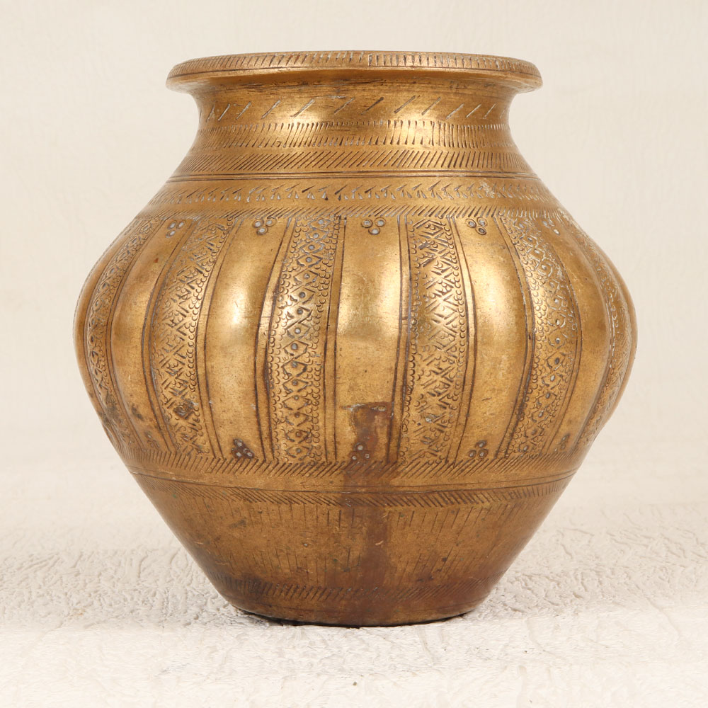 Decorate your living room with our exquisite Vintage Brass Holy Water Pot. Crafted with precision by highly skilled and experienced Indian artisans in the timeless South Indian Art tradition, this pot seamlessly blends spirituality with artistry. The pot is made from high-quality brass which showcases intricate engravings that tell stories of ancient rituals and divine significance. The antique brown finish adds a touch of nostalgia, giving the pot a vintage allure that resonates with history. Perfect for prayers, rituals, and havans, this holy water pot is a versatile addition to your sacred space. Its elegance knows no bounds, making it suitable for homes, offices, restaurants, hotels, or cafes, enhancing the ambiance of any prayer room. Beyond its spiritual utility, this pot transforms into a charming indoor flower pot, further contributing to the aesthetic appeal of your space. Embrace the charm of yesteryears by adding this masterpiece to your vintage collection, or present it as a thoughtful gift to your loved ones on special, festive, or auspicious occasions.
