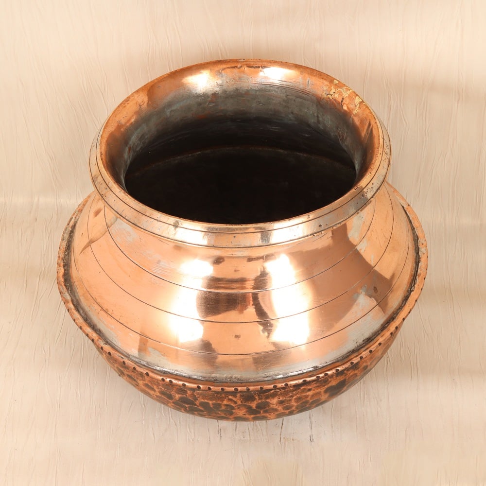 Elevate your home decor with the captivating essence of ancient Islamic artistry, embodied in our exquisite Vintage Copper Cooking Pot. This one-of-a-kind masterpiece transcends the boundaries of functionality, transforming your living space into a mesmerizing tribute to the rich cultural heritage of the East. Unlock the secrets of a bygone era with this stunning Vintage Copper Cooking Pot. More than just a decorative item, this captivating piece serves as a window into the artistic brilliance that once graced the kitchens and homes of the Islamic world. Proudly showcase this masterful creation, and let it inspire awe and wonder in all who behold its beauty. Whether you're a collector of fine art, a lover of cultural artifacts, or simply someone who appreciates the timeless charm of vintage decor, this Vintage Copper Cooking Pot is a must-have addition to your home. Elevate your space and immerse yourself in the captivating essence of Islamic artistry with this truly remarkable piece.