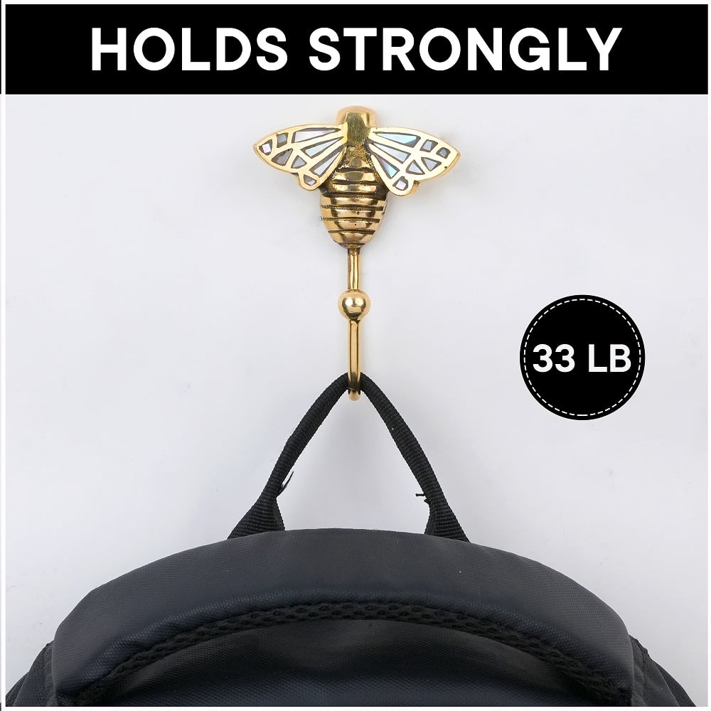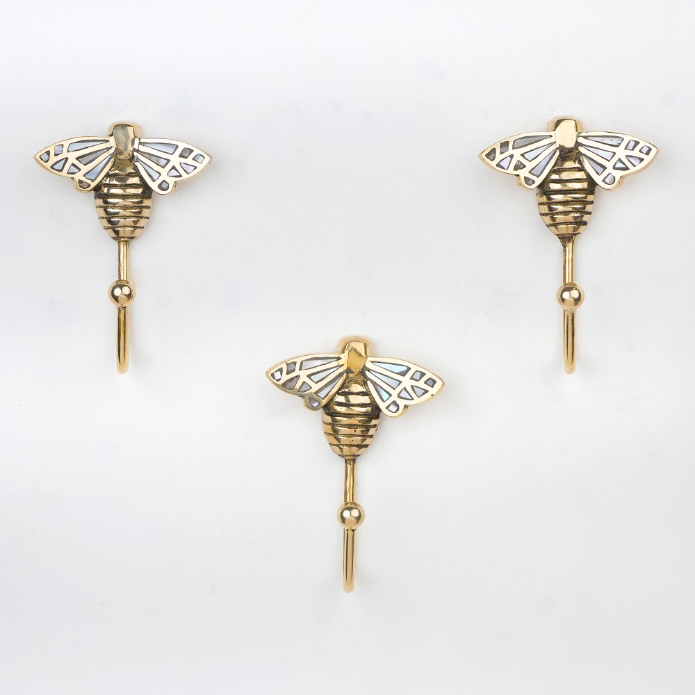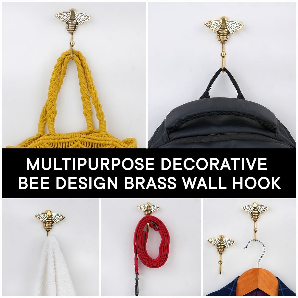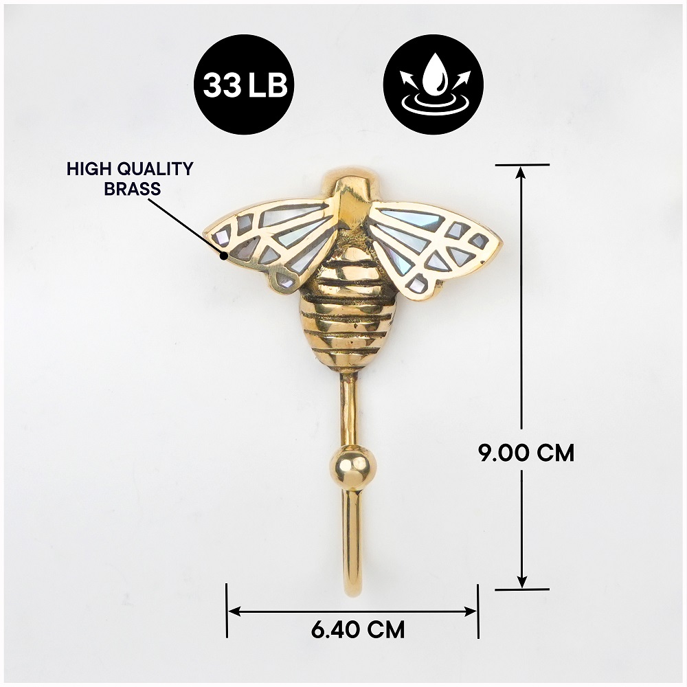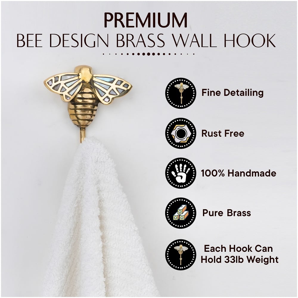 Add a touch of elegance and artistry to your walls with this Bee Design Brass & Mother of Pearl Wall Hook. Expertly handcrafted from premium brass, this charming hook features a bee-shaped design beautifully inlaid with shimmering Mother of Pearl detailing blending luxury with functionality. Perfect for hanging towels, bags, keys, or accessories, this wall hook is not just a utility piece but also a stylish dcor accent. Its sturdy construction ensures durability, while the polished golden finish and pearly highlights bring a warm, sophisticated glow to any space be it your bathroom, entryway, or bedroom.