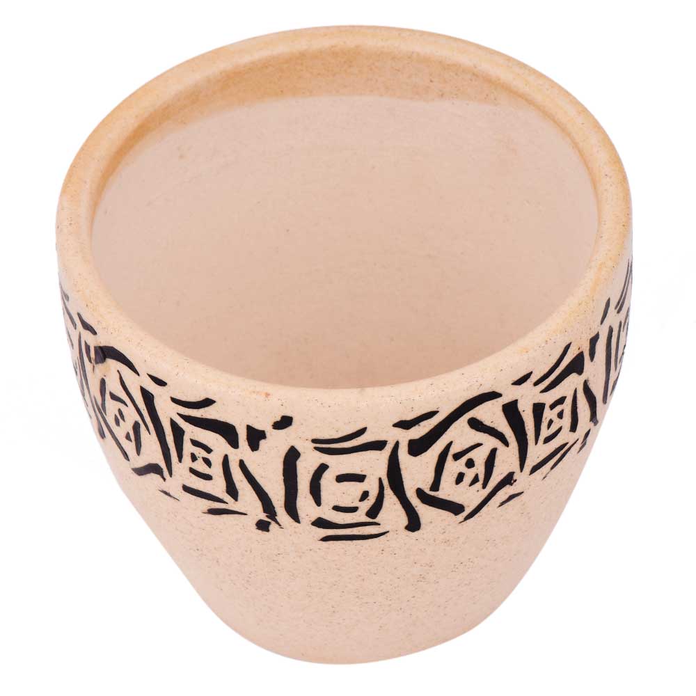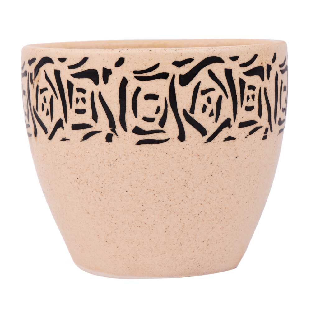 Beige Ceramic Pot With Hand Painted Black Abstract Design to accentuate the beauty of your home, office and other commercial places, used in nursery, garden and lawn decoration, lace your herb and apices and an excellent wedding and Diwali gift for your near and dear ones.