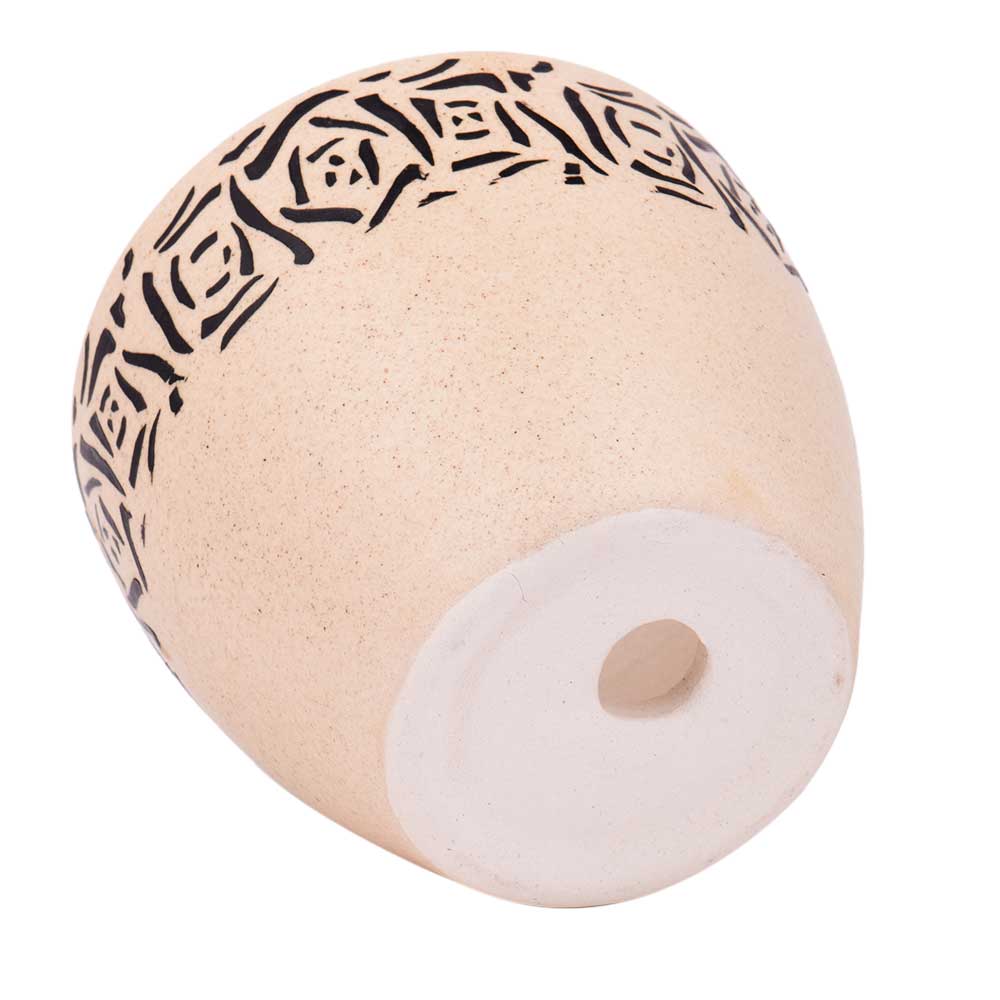 • Beige Ceramic Pot With Hand painted Black Abstract Design