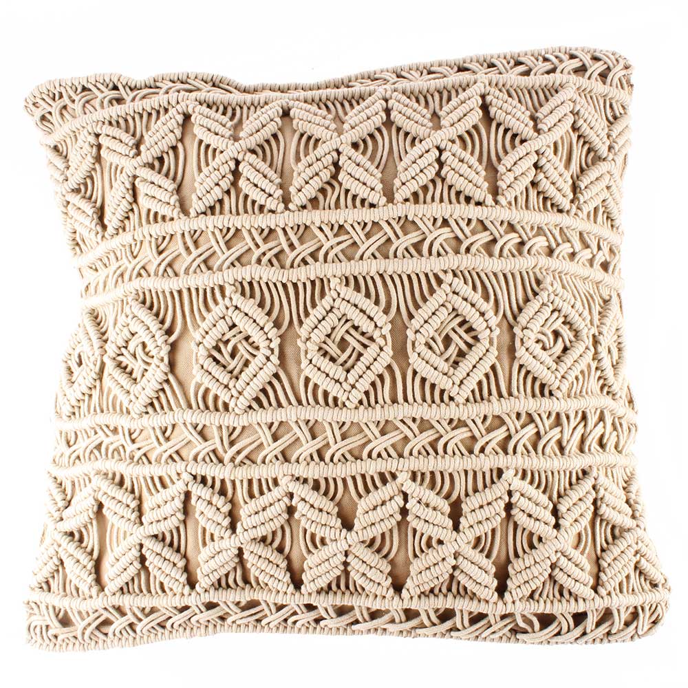 Beige Cotton Macrame Cushion Cover