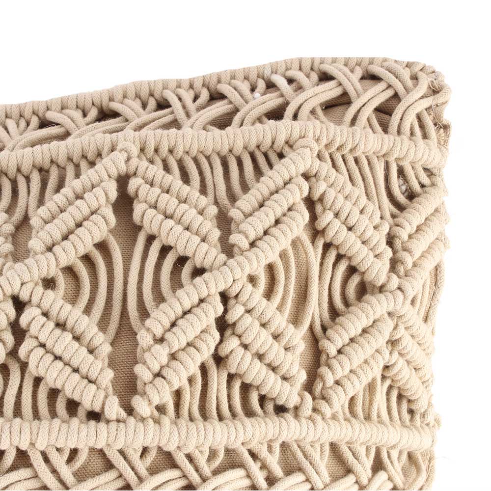 • Beige Cotton Macrame Cushion Cover