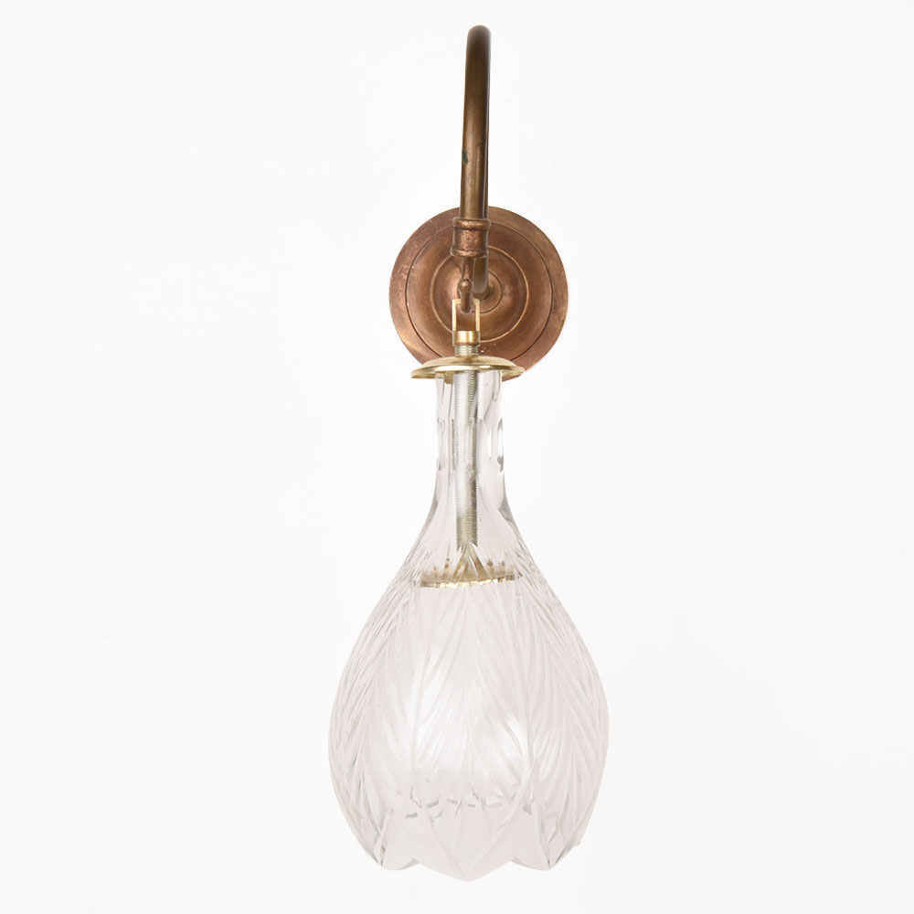 Bell clear glass wall lamps on bronze bracket. The lamp is unique and allows a great lighting option for any room.